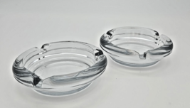 Vintage Clear Glass Round 3 Slot Ashtrays Heavy Set of 2