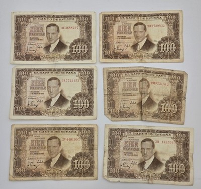 Lot of 6 Spain 100 Pesetas Notes Romero La Fuensanta Circulated Banknotes