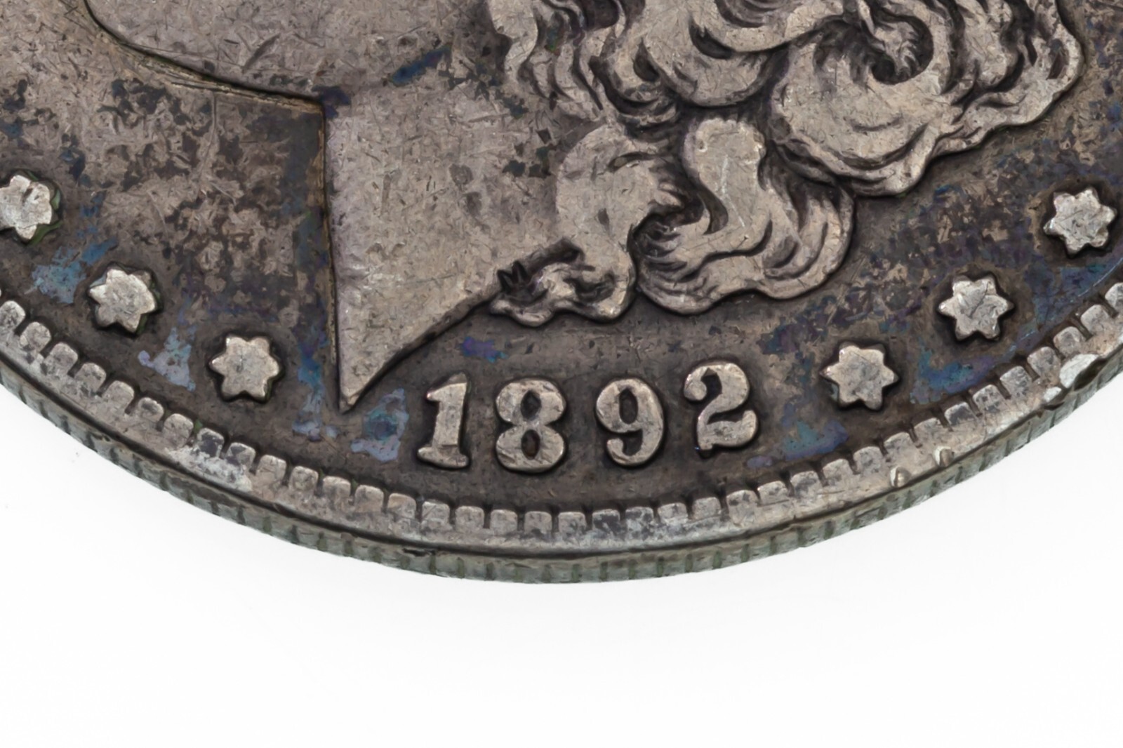 1892-S Silver Morgan Dollar Fine Condition, VF Worn, Obverse Stripes- show or...