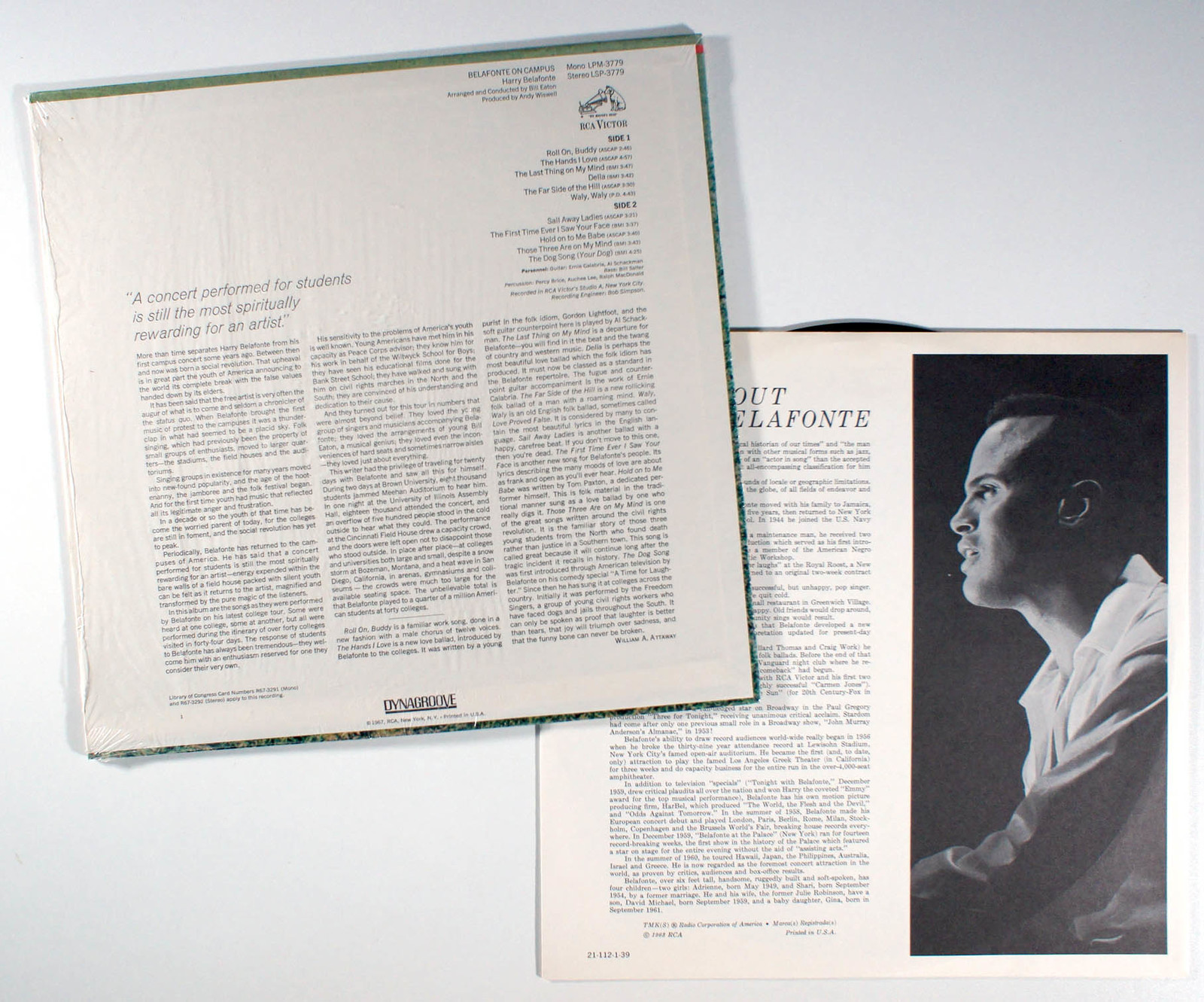 It can be hypothesized that Harry Belafonte's career as a singer of folk songs ended with this album. The theme for the album was spurred by Belafonte's popularity on college campuses in the mid-'60s. The liner notes estimate that during his most recent tour, Belafonte played to a quarter of a million American students at forty colleges.