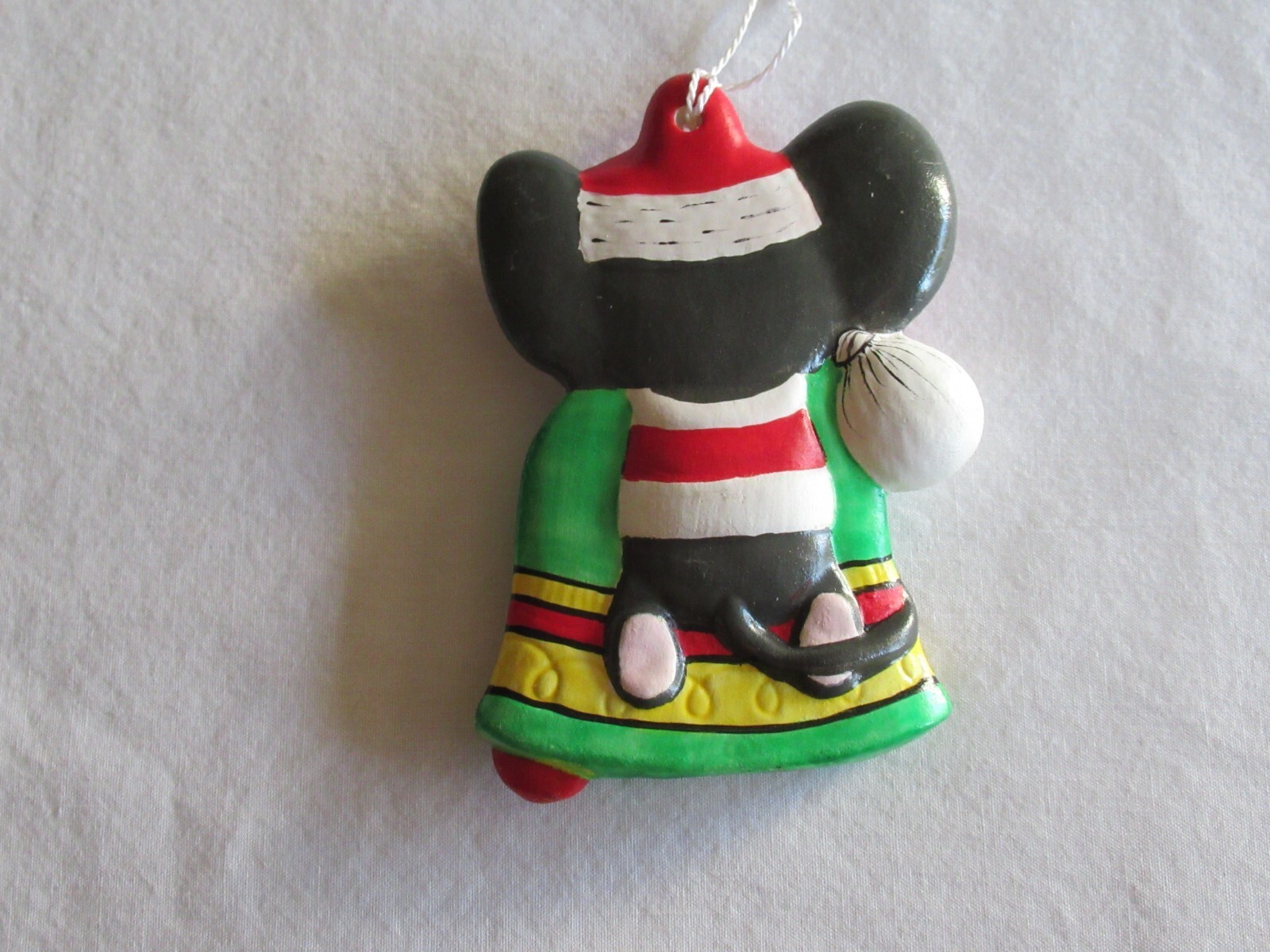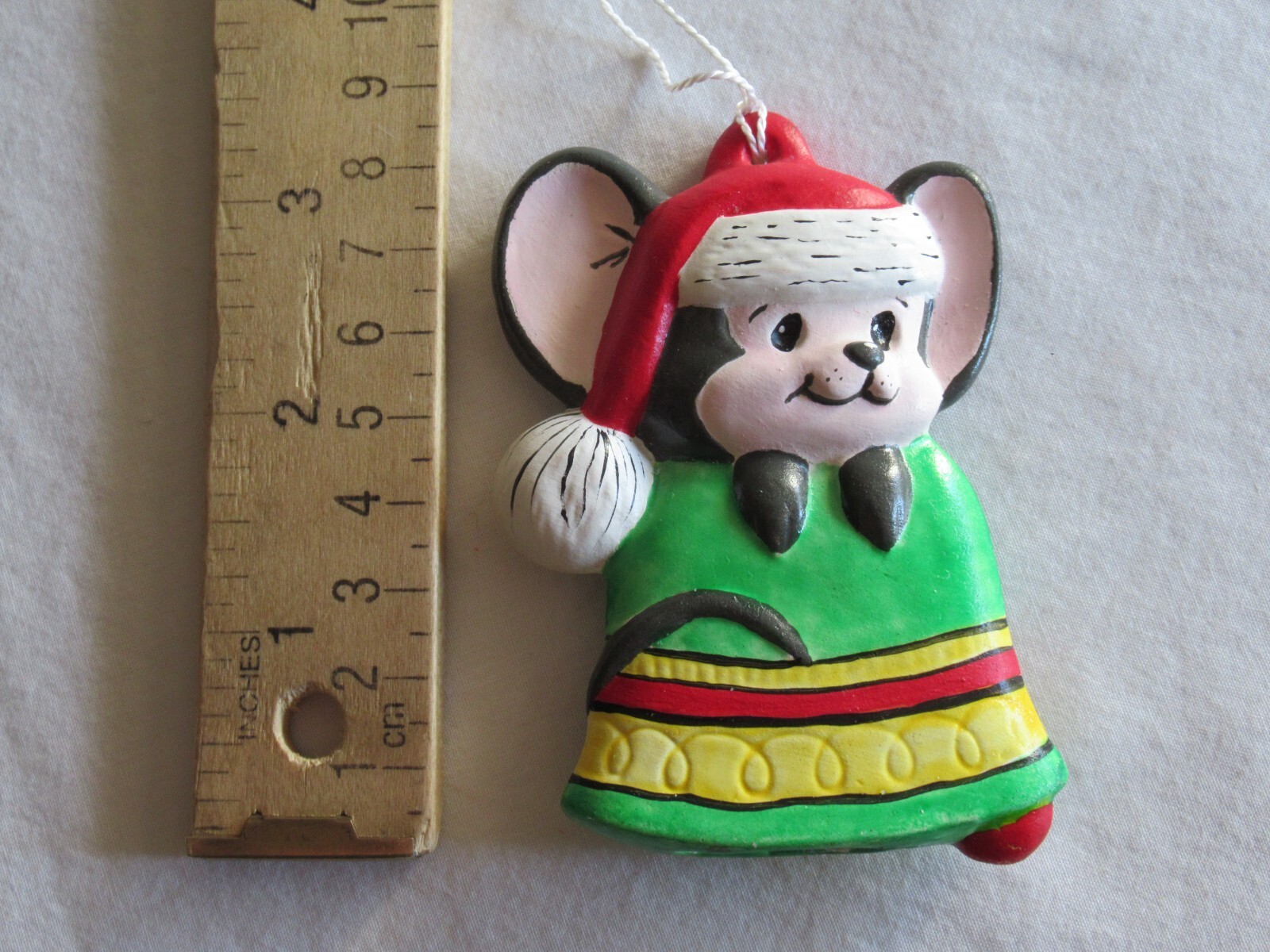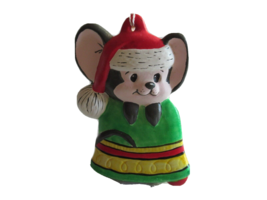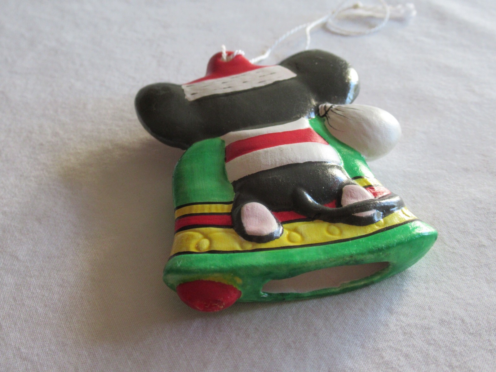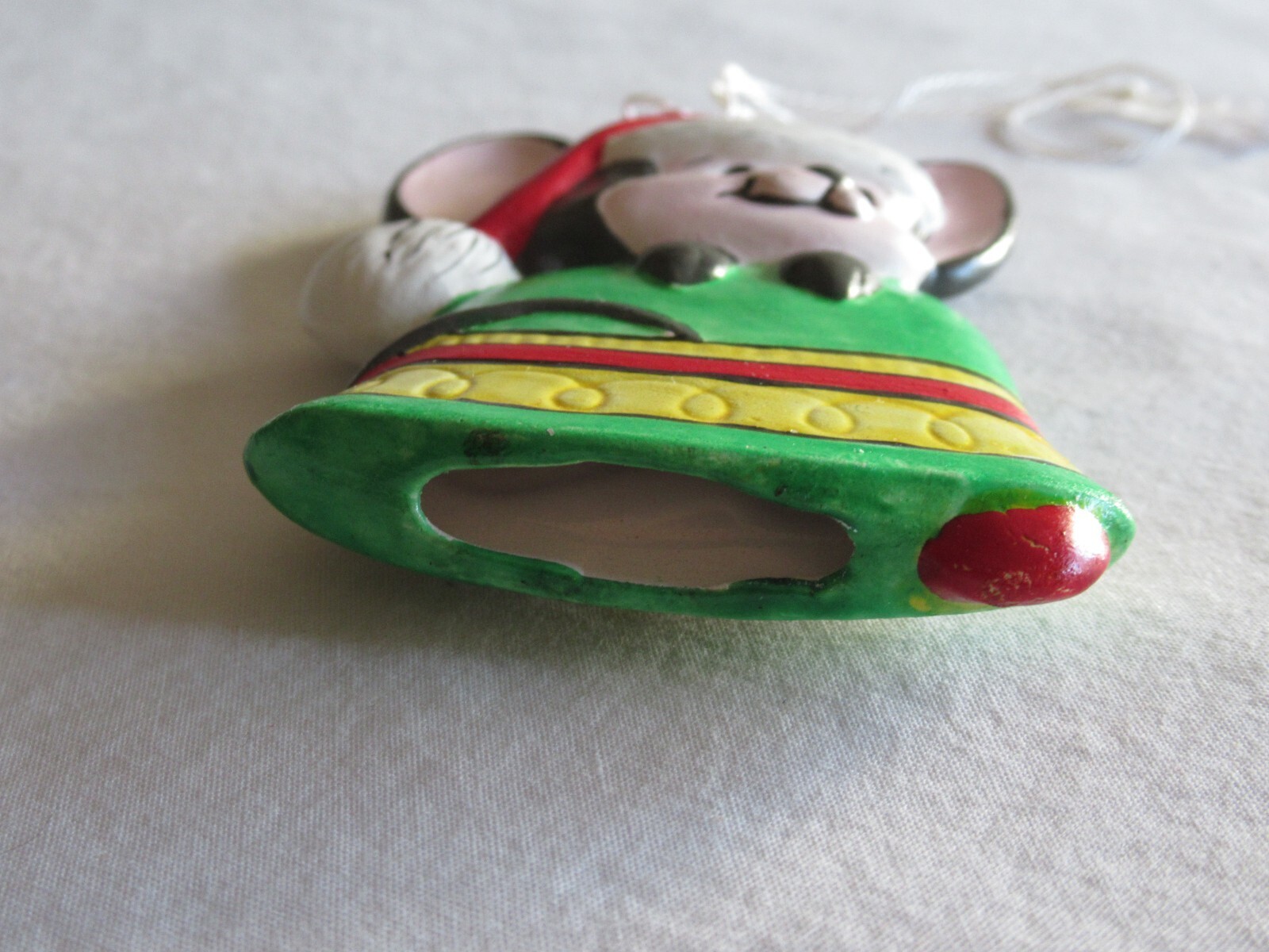 Vintage Alberta's Ceramic Mouse On Bell Climbing Holiday Christmas Ornament 3.4"