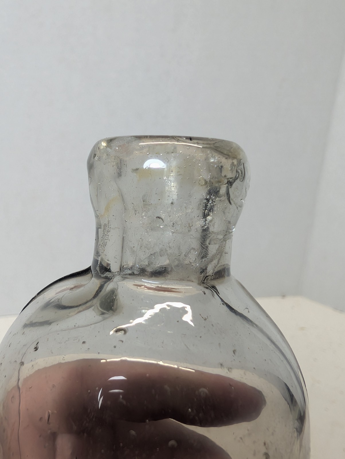 This is a super nice early bottle. There are no chips or cracks or damage. The only thing noticeable is around where the spout is. There are little like cracks inside the glass but you can't feel them. See pics for best condition description.