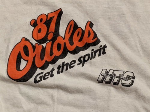 Up for sale is a used vintage 1987 HTS Baltimore Orioles Memorial Stadium Giveaway MLB 50/50 HTS Short Shirt Youth L.
