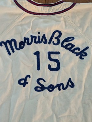 Le produit est un ensemble d'uniformes vintage Taille 16 de l'equipe de baseball des Pirates Wilson 1960 a Allentown, en Pennsylvanie. L'ensemble comprend une chemise, un pantalon et un chapeau en couleurs bleues et blanches, tous avec le logo de l'equipe et representant l'equipe Morris Black Sons. Fabrique aux Etats-Unis, cet ensemble vintage original est une piece unique et nostalgique pour tout collectionneur ou fan de souvenirs sports de l'equipe Pirates.