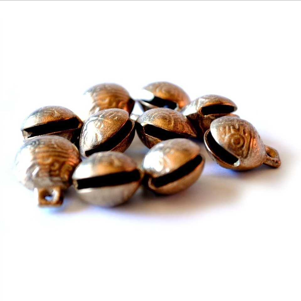 TIBETAN BRASS BELLS LOT of 10 16mm Bead Craft Temple Herding Small Metal Ethnic
