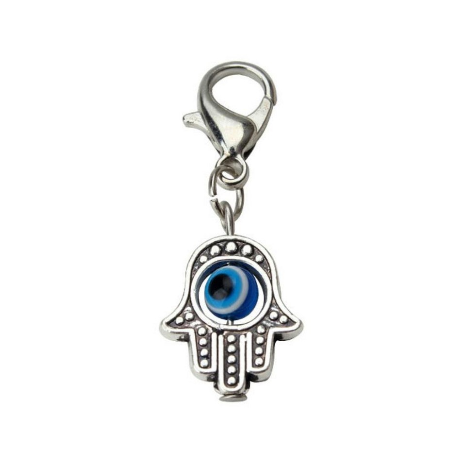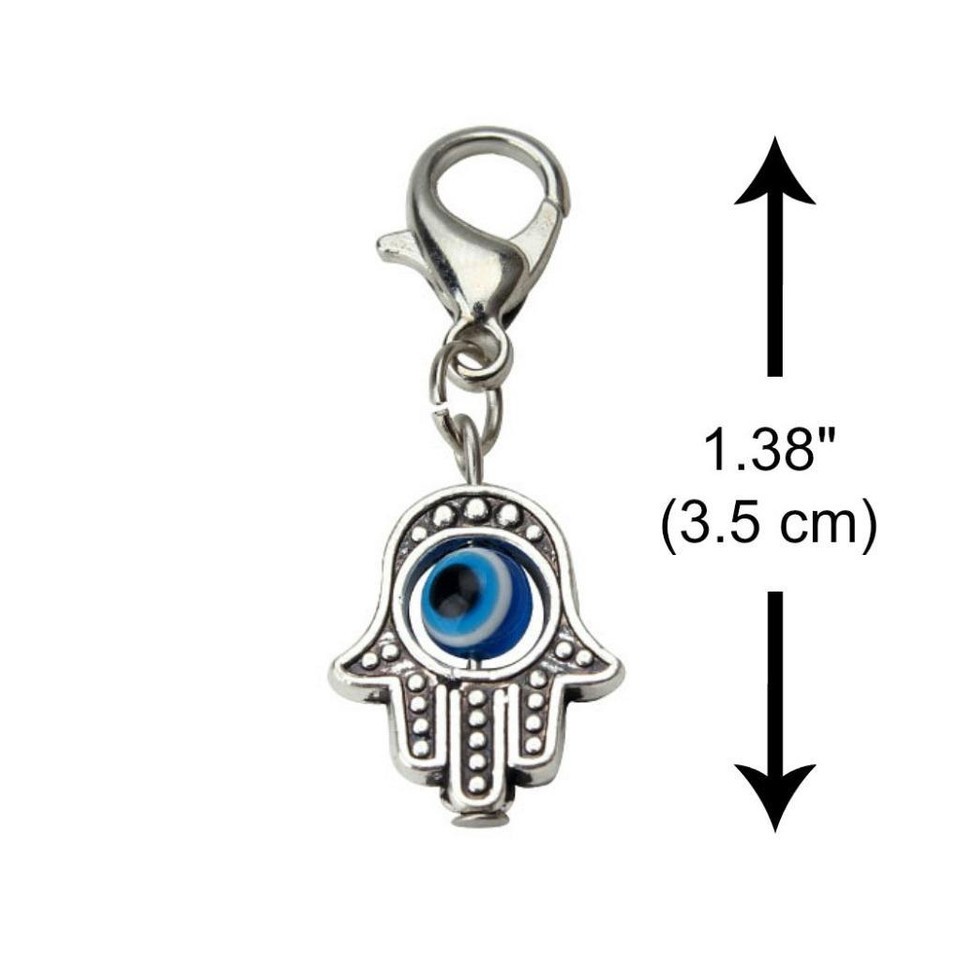 Set of 3 tiny 'Evil Eye - Hamsa Hand' charms with lobster clasp. Will fit 'Thomas Sabo' style bracelets, traditional link charm bracelets, or use as pendant on chains, zipper pulls, etc.