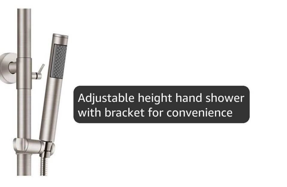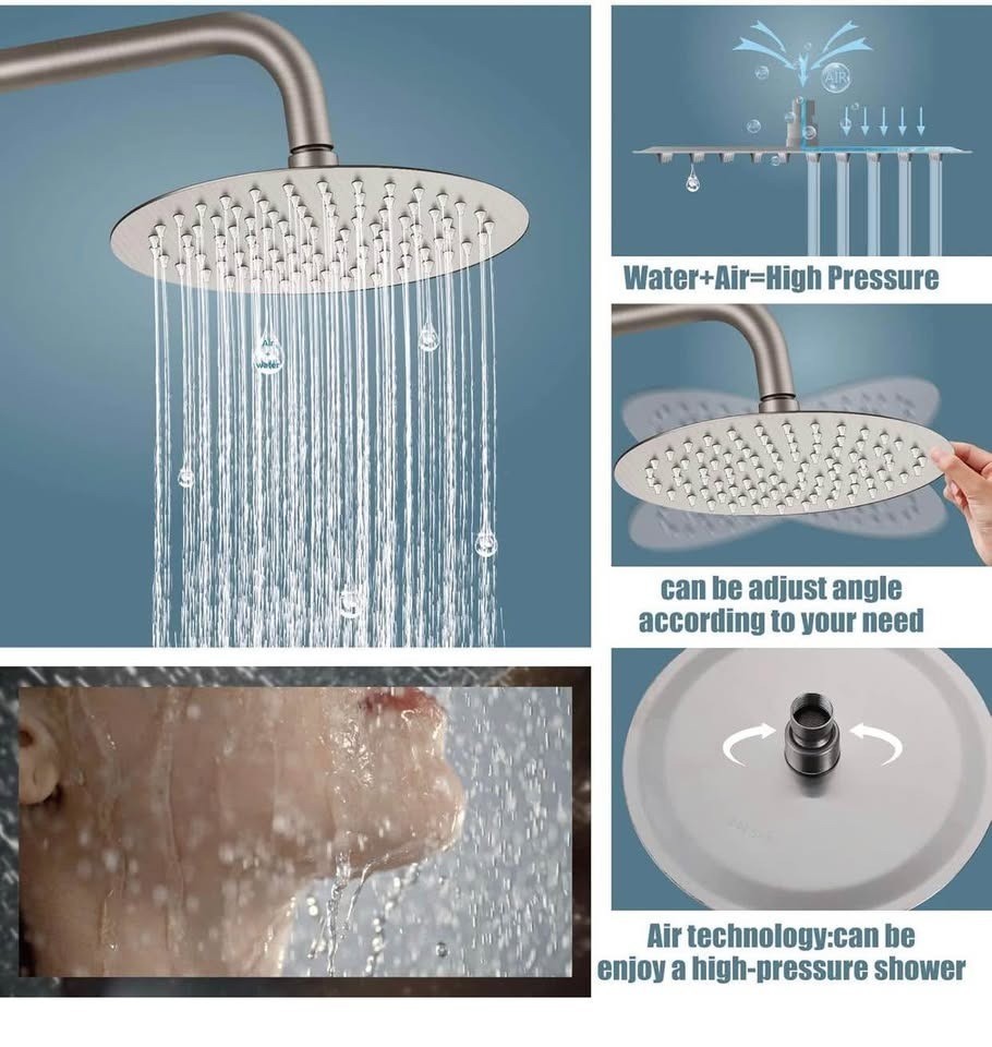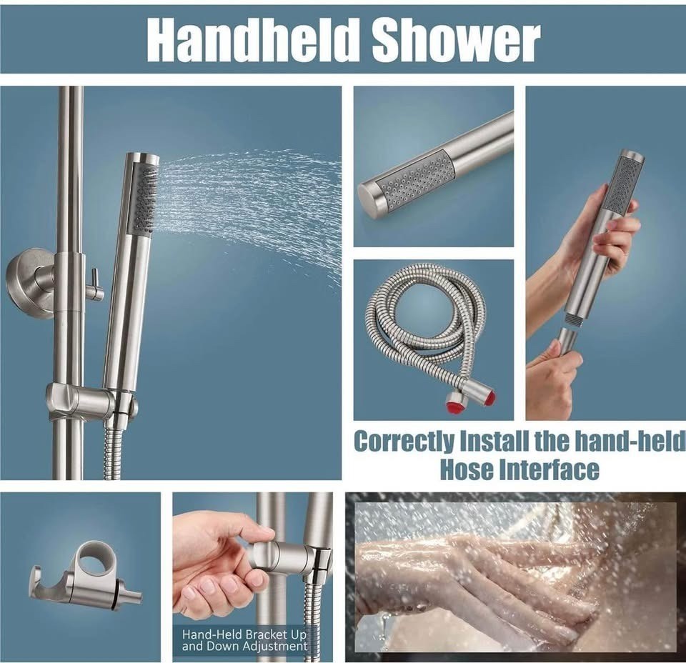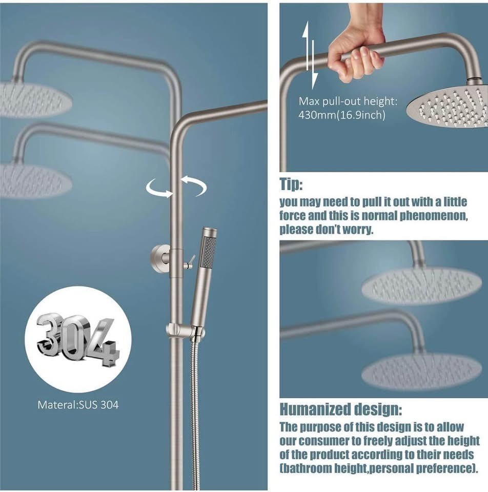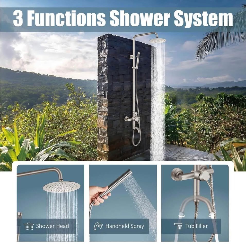 Aolemi Outdoor Shower Fixture SUS304 Triple Function Brushed Nickel Wall Mounted Stainless Steel Shower Faucet System Set with Hand Spray, 8" Rain Shower Head