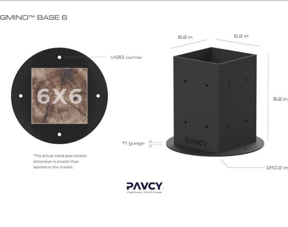 GMINO Base 6 Outdoor Framing Module, 6x6 Post Base, Pergola Fence Kit - 2 Black