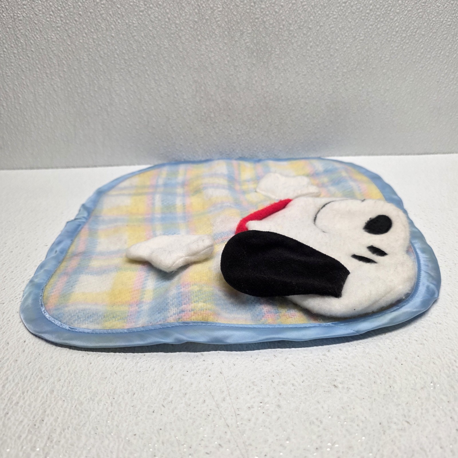 Vintage 1958 Knickerbocker Snoopy Plaid Satin Baby Security Blanket Lovey Puppet. Small spot on back of Snoopy, see images for condition. Images show actual item that will ship.