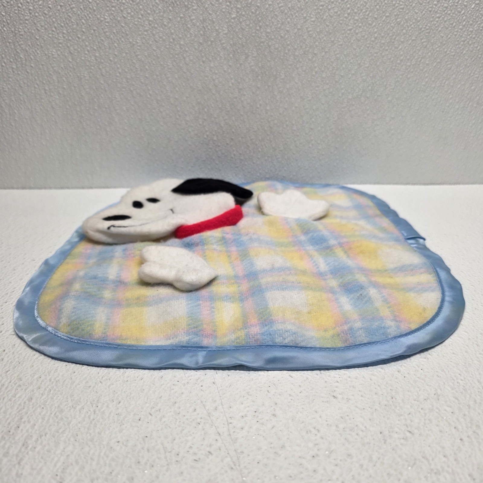 Vintage 1958 Knickerbocker Snoopy Plaid Satin Baby Security Blanket Lovey Puppet