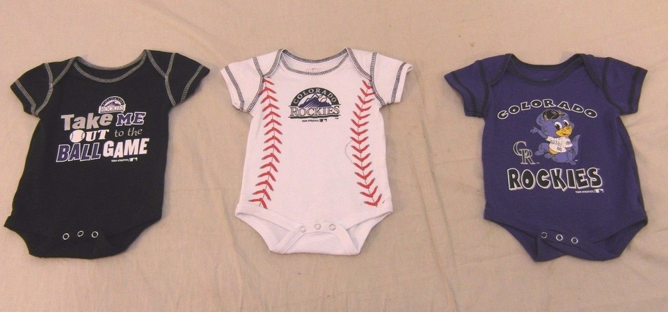 NWT MLB BABY INFANT 3 Piece Creeper Bodysuit Set Colorado Rockies Purple White Black