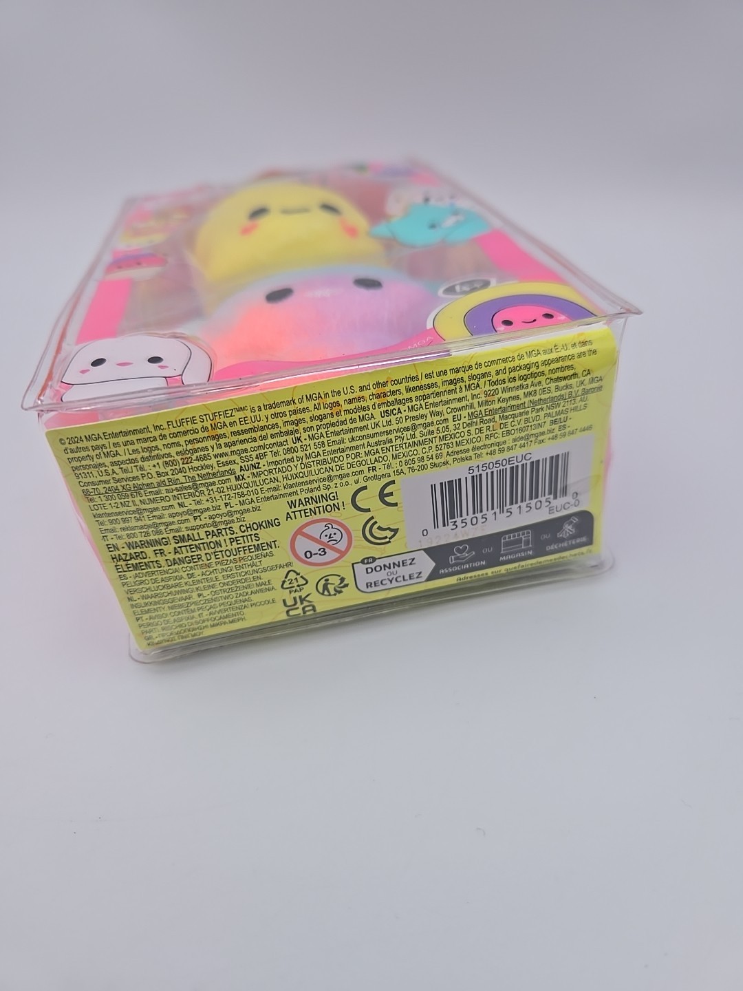 The Fluffie Stuffiez Minis Plush Surprise 2-Pack is a delightful toy set from MGA Entertainment. Each mini plush toy is soft and squishy, perfect for children aged 4 and older. This surprise reveal set includes a multicolor chick plush, measuring 3 inches in size, making it suitable for young kids who love birthdays and stuffed animals. Made in China, this adorable collection is sure to bring joy to any child's playtime.