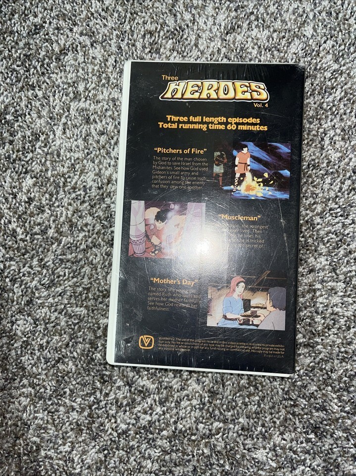 The product is a VHS tape featuring the Superbook animated series, specifically Volume 4 titled "Three Heroes." This new sealed anime VHS provides fans with a way to enjoy the adventures of Superbook and his companions in a nostalgic and classic format. Perfect for collectors or those who prefer watching content on VHS, this product allows viewers to immerse themselves in the world of Superbook and embark on exciting adventures with the three heroes.