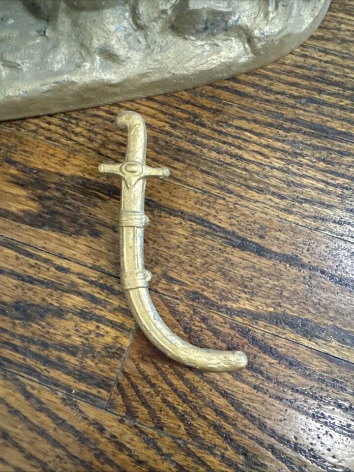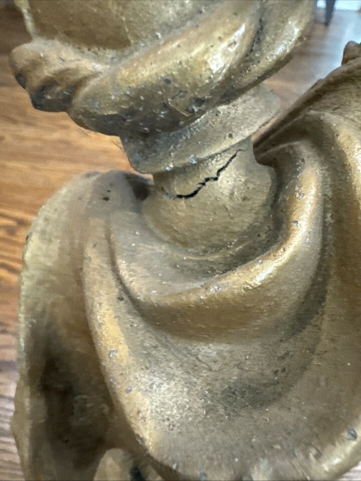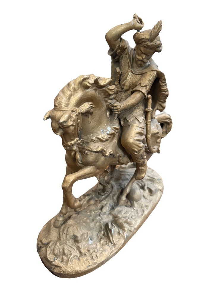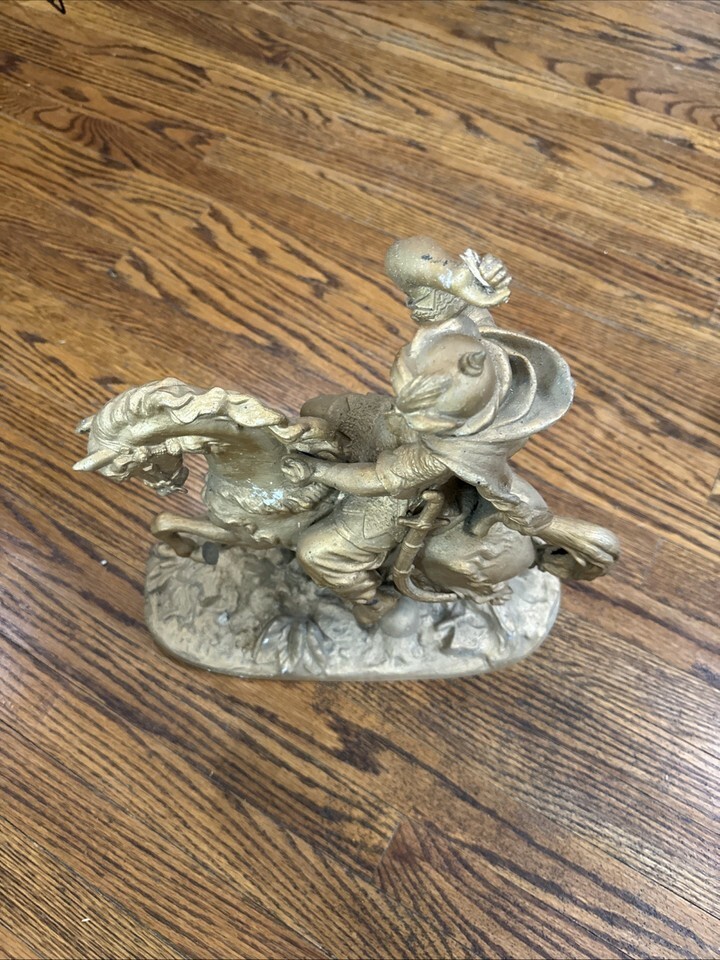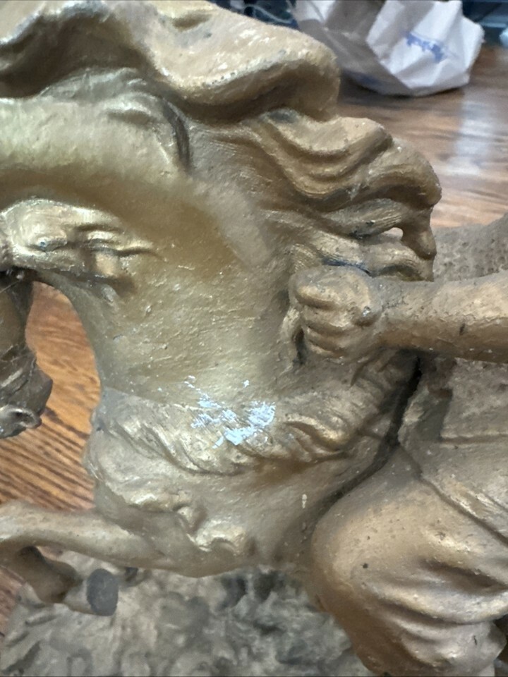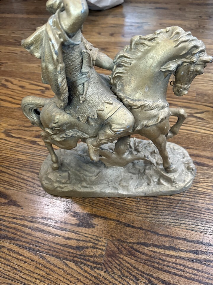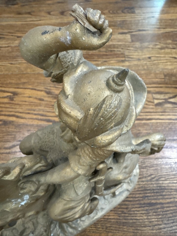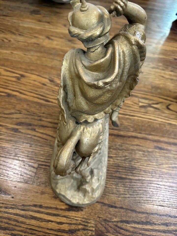 Vintage Mongolian Cast Iron Gold Painted Horse Soldier 15 Inch 12 Pounds