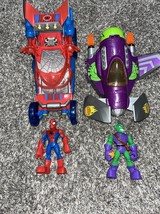 2012 Marvel Hasbro Spiderman And Green Goblin Action Figures And Hovercrafts