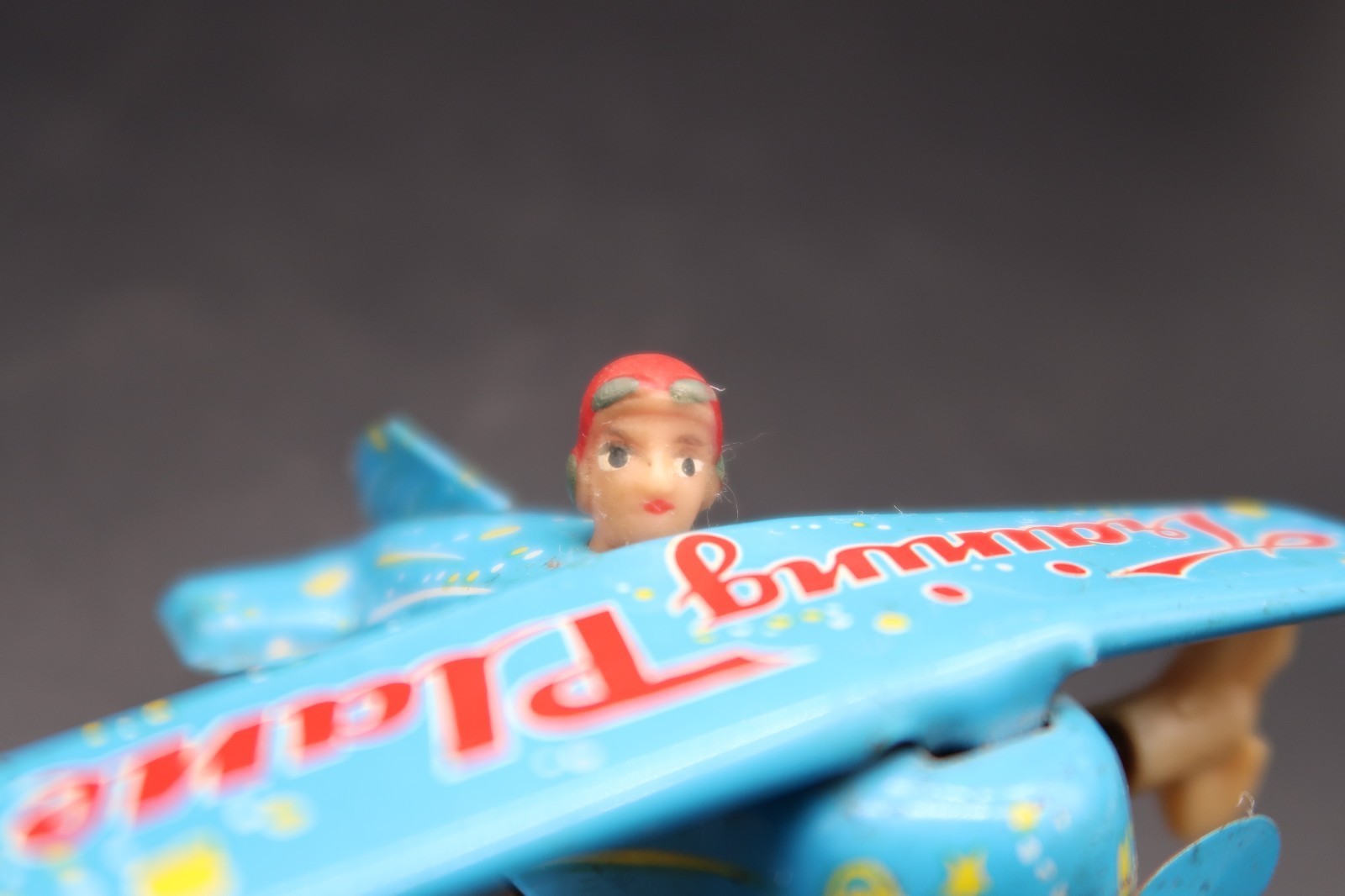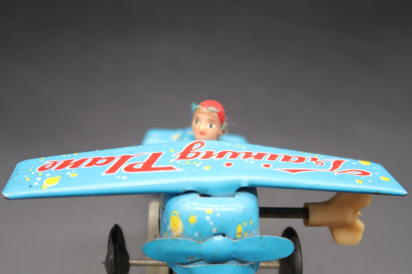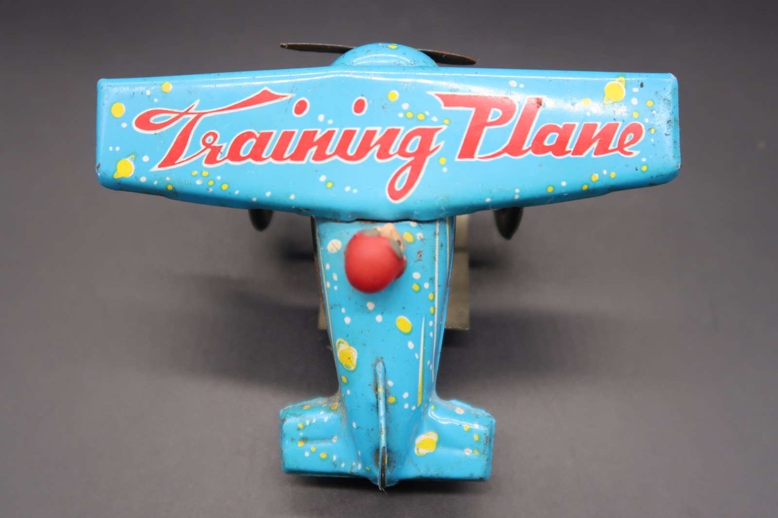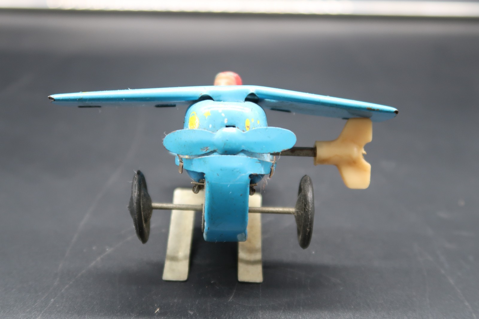 Vintage Blue Wind Up Tin Toy Training Plane and 50 similar items