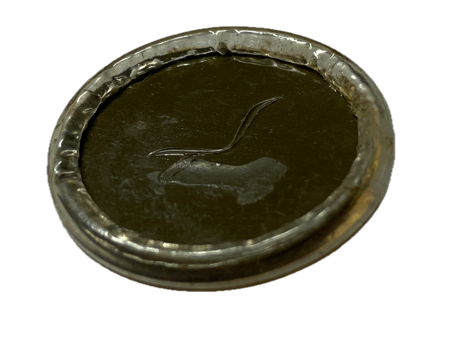 This plastic collar disk was for the enlisted soldiers. The retention pin is missing. There is some camera glare on this disk. These plastic collar disks were short lived.