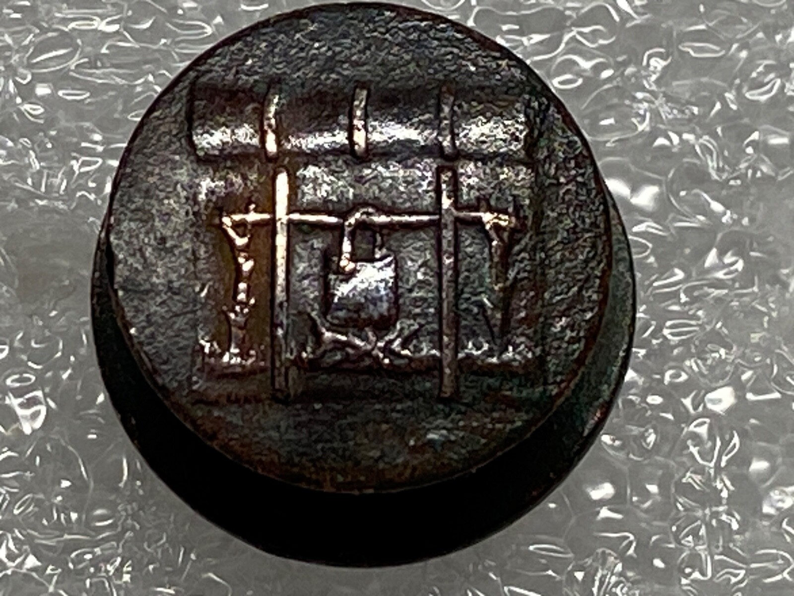 Oval lapel pin with stud fastener on the reverse. Measures 5/8 inches in diameter. G.A.R. logo on the obverse with vignette of the figure of Liberty in the center flanked by a Union sailor and soldier clasping hands in fraternity. Two children are kneeling in the foreground representing charity and the assurance of protection from their military comrades. Grand Army Of The Republic Veteran, 1861-1866, is in raised letters around the circumference of the pin. The fastening stud on the reverse allowed the Union veteran to proudly wear this pin in the lapel, which depicts a metal pot over a fire suspended by two vertical wood sticks. There is a minor bend on the lower portion of the stud. Minor oxidation is visible due to age.
