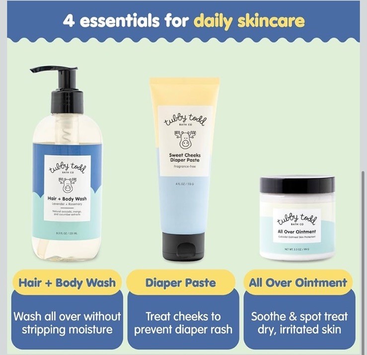 TUBBY TODD Newborn Skin Care Bundle - Hypoallergenic Hair Body Wash, Ointment.