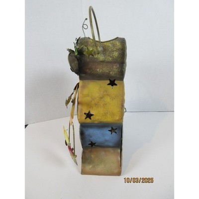 Conjure the spirit of autumn with this charming metal scarecrow lantern, a heartwarming addition to your seasonal decor. This handcrafted piece features a whimsical scarecrow holding a "Welcome" sign, adorned with delightful details such as a perched blackbird, a cornucopia brimming with harvest bounty, and a cheerful pumpkin at its base. The scarecrow's hat is accented with leaves and sunflowers, while star-shaped cutouts cast enchanting shadows when illuminated by a candle. A sturdy handle allows for easy carrying or hanging, making it a versatile accent for any space. This enchanting lantern will add a touch of rustic charm to your entryway, mantel, or dining table, creating a warm and inviting atmosphere for Thanksgiving gatherings or cozy autumn evenings.