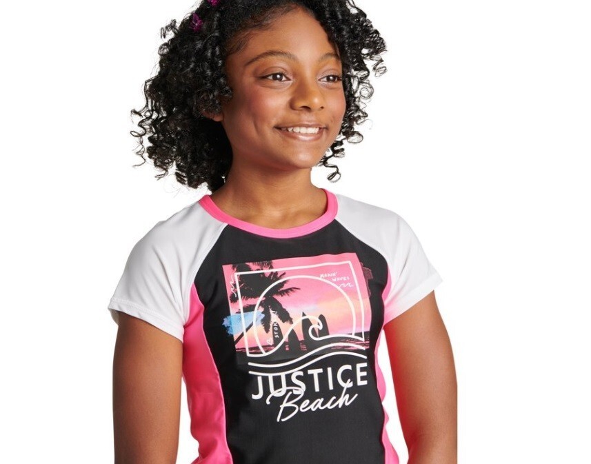 new JUSTICE girl's 2pc Graphic RASHGUARD Swim Suit Set