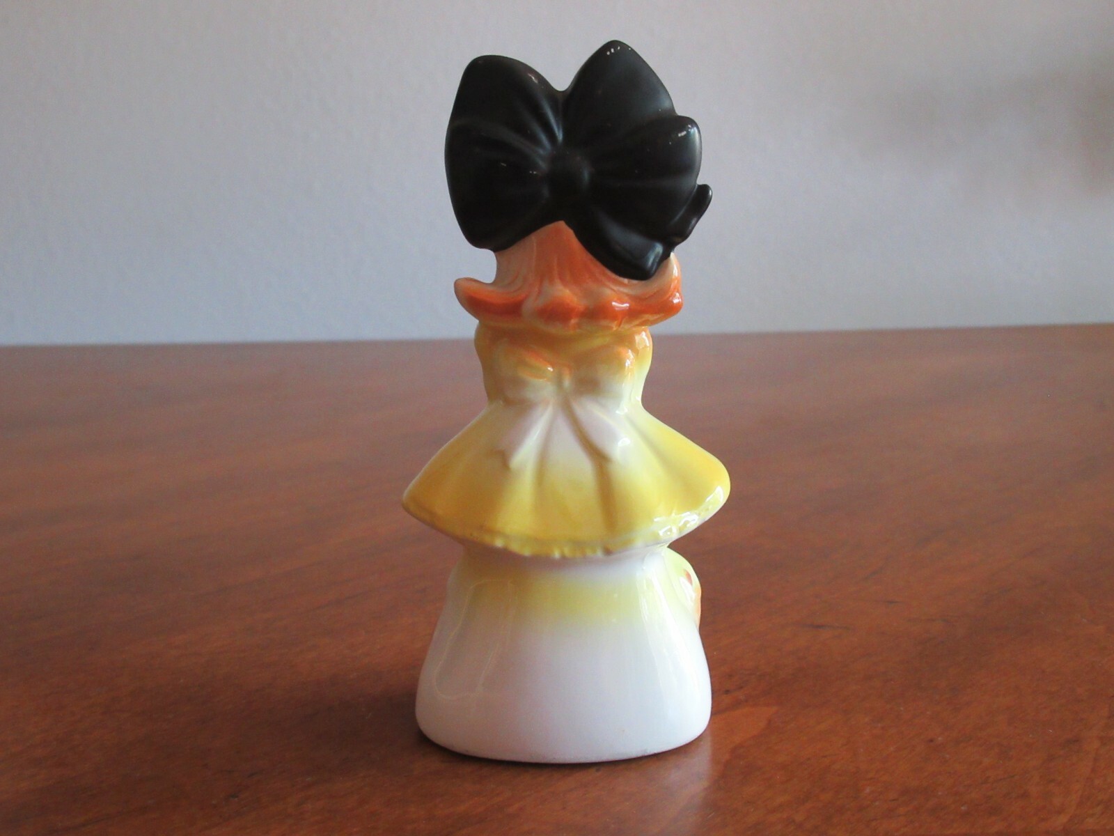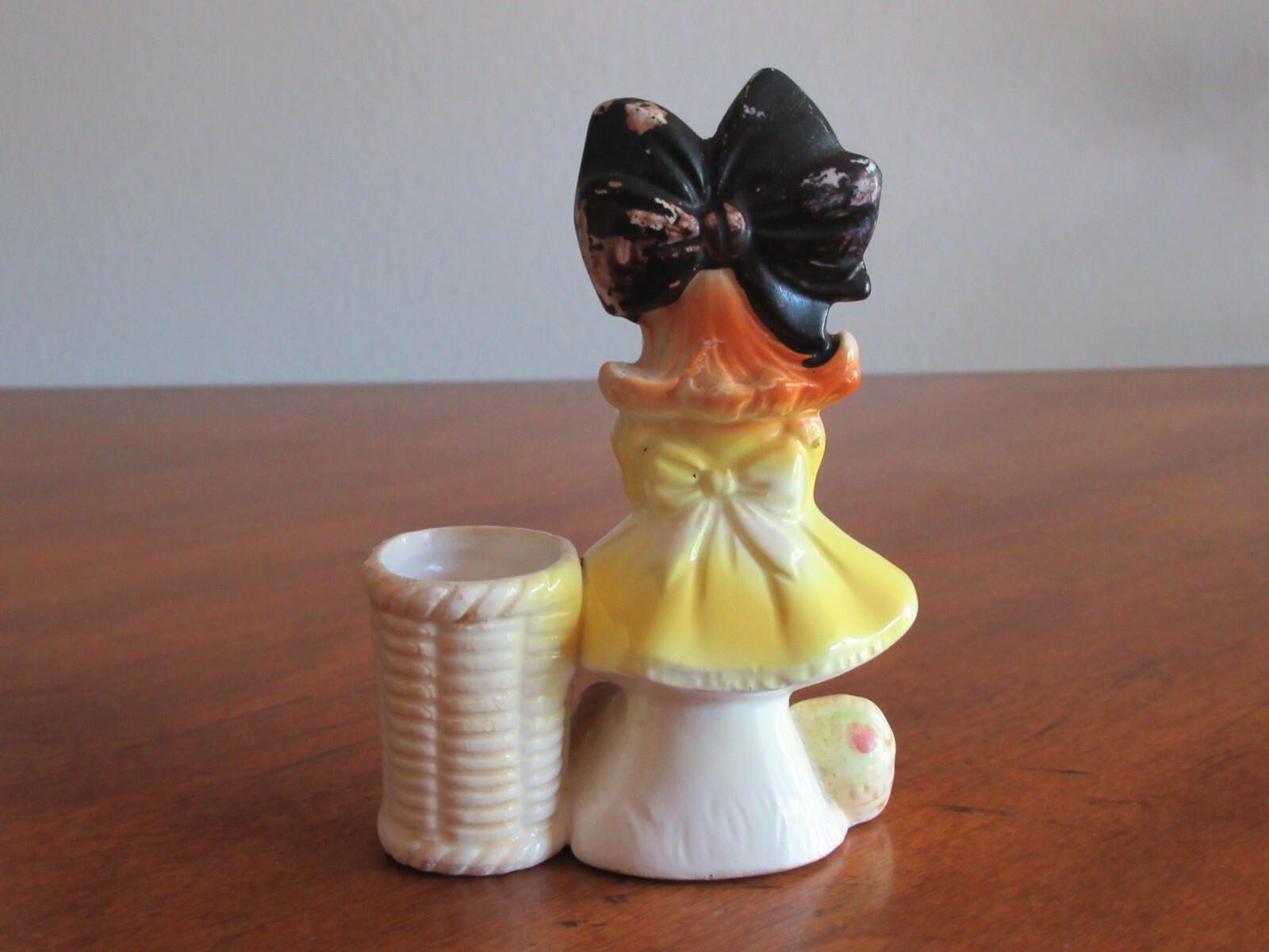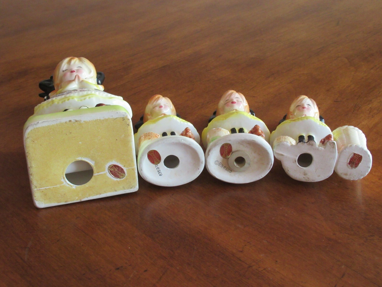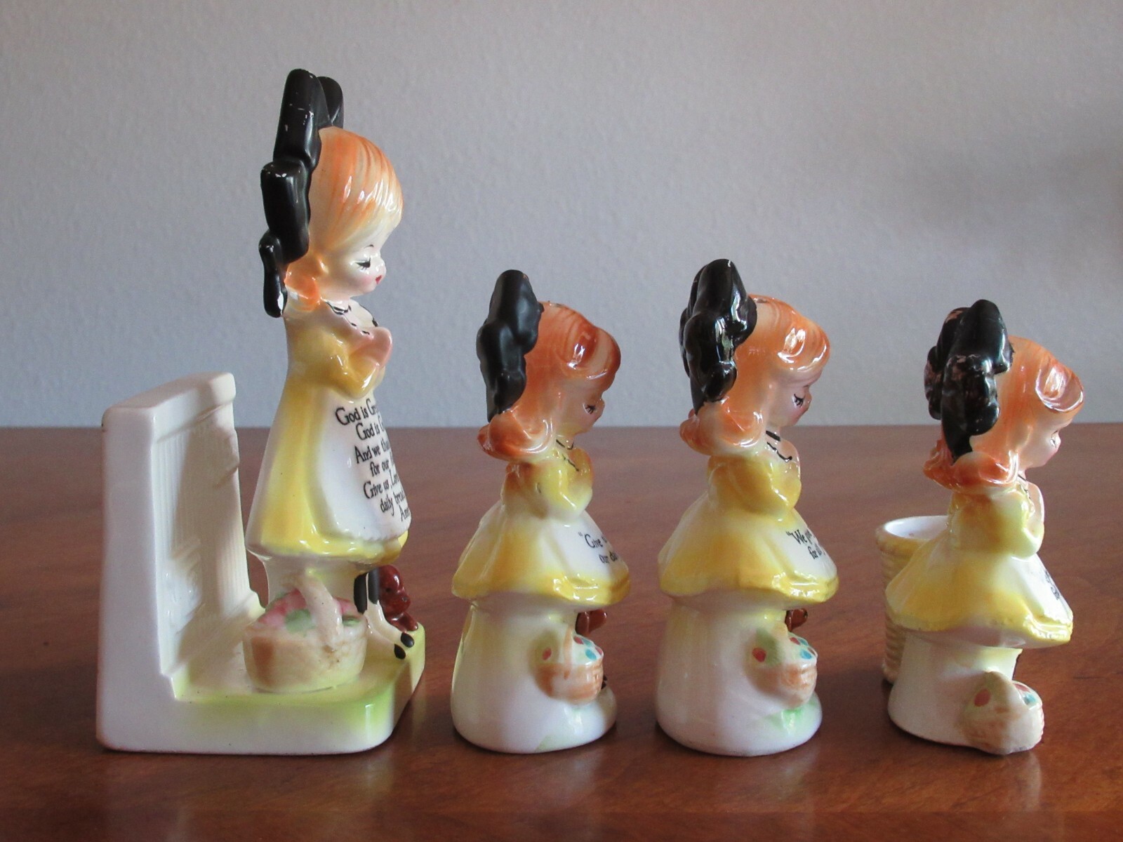 READ* Enesco Kitchen Prayer Girl Yellow Napkin Holder Salt Pepper Toothpick Vtg