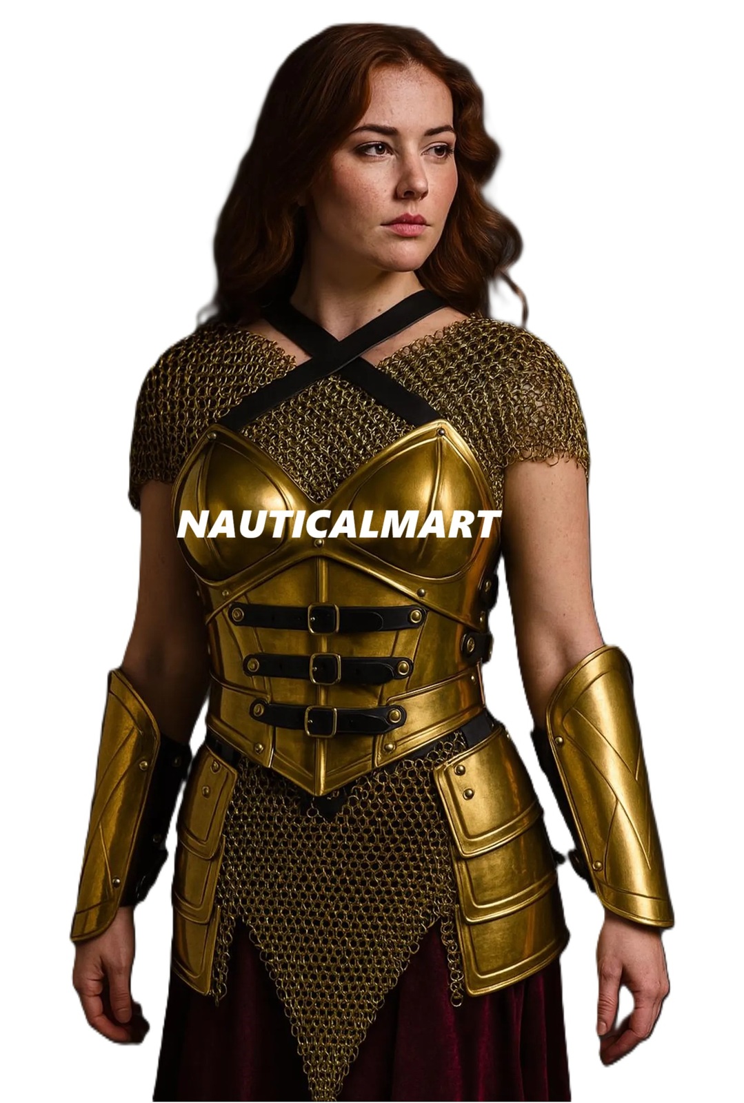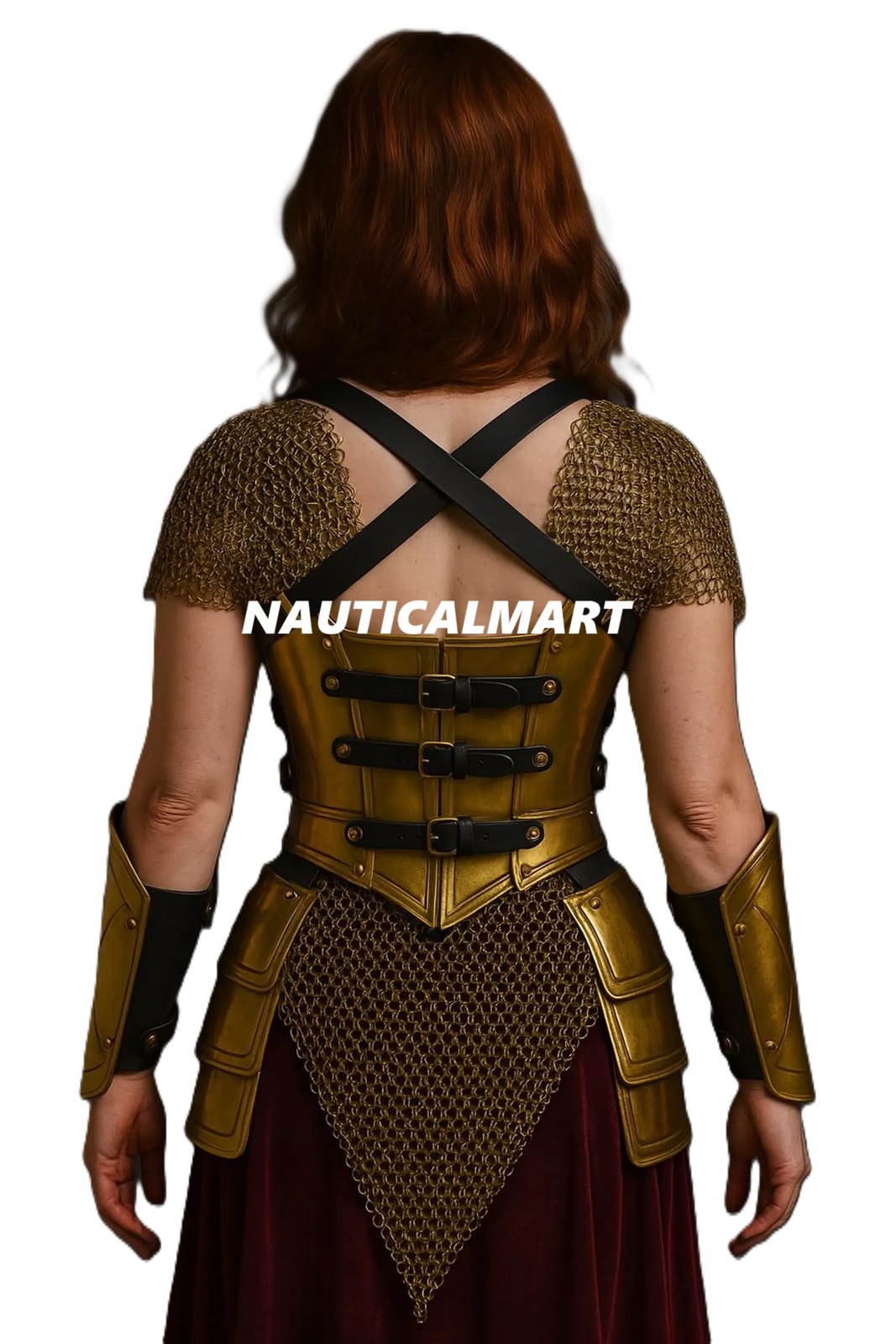 Golden Elves Lady Warrior Half Body Armor Corset,Tassets Chainmail | Medieval Lady Armor | LARP Women's armor | Gift For women