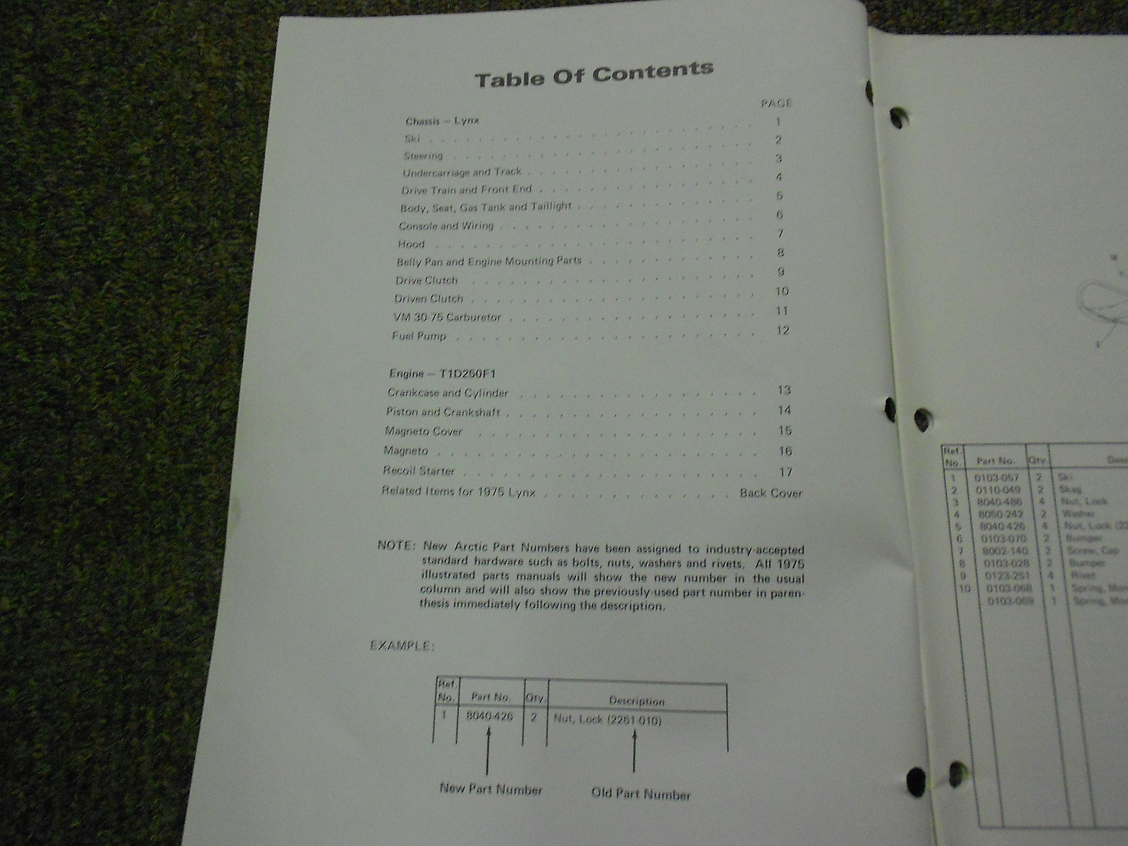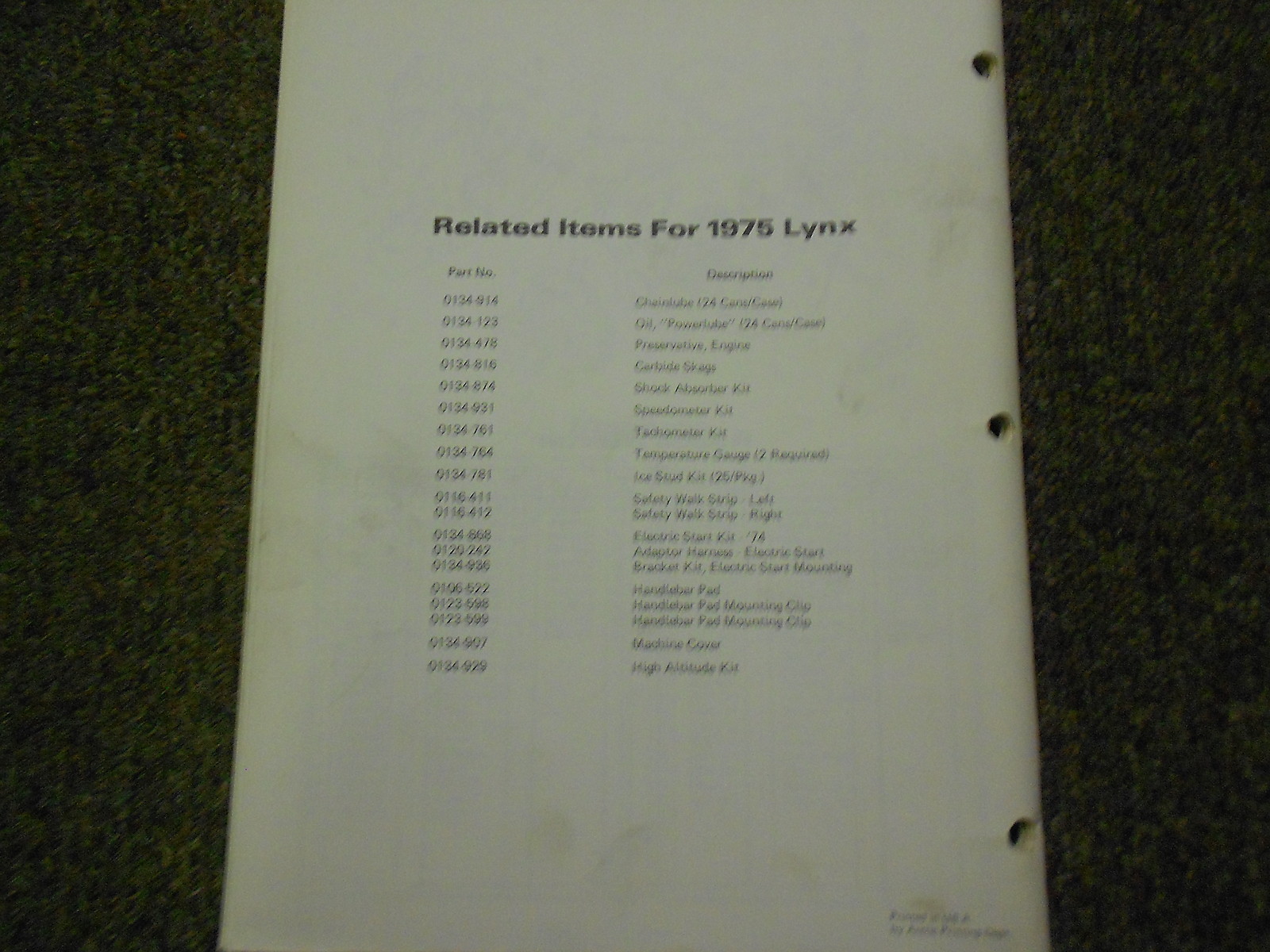 Catalogo Manuale Di Parti Illustrato Arctic Cat Lynx 1975 FABBRICA OEM