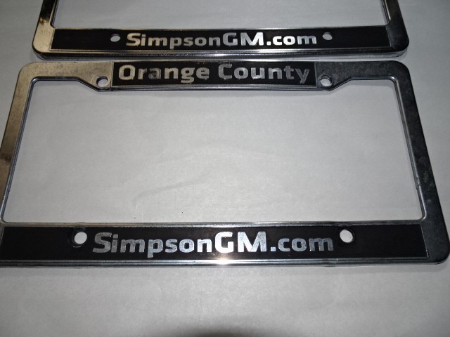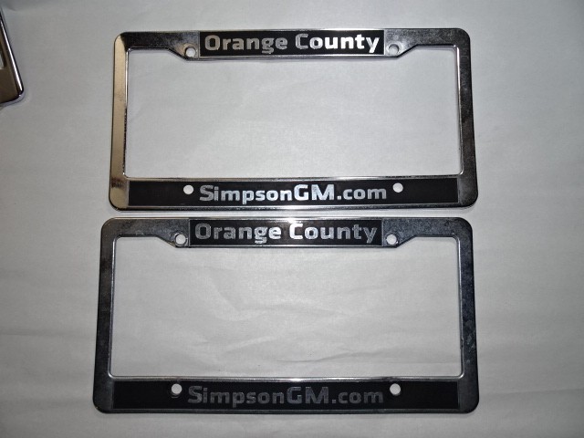 Pair of Orange County Simpson GM License Plate Frame Dealership Plastic