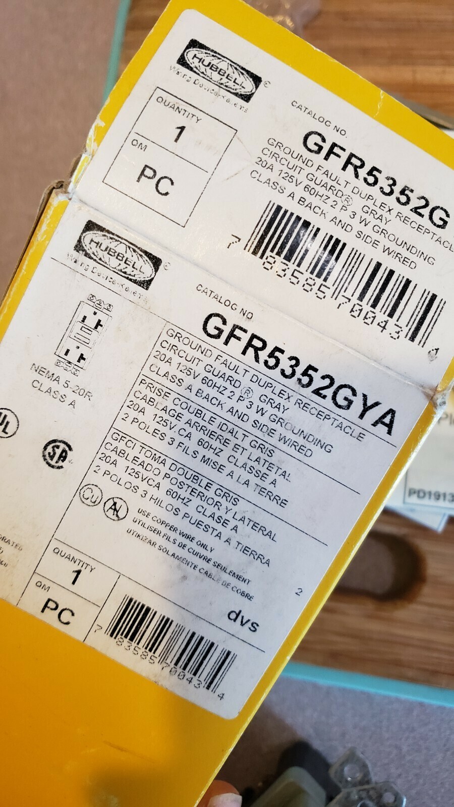 NEW Set Hubbell Ground Fault Receptacle w/ instructions Gray Guard # GFR5352GYA