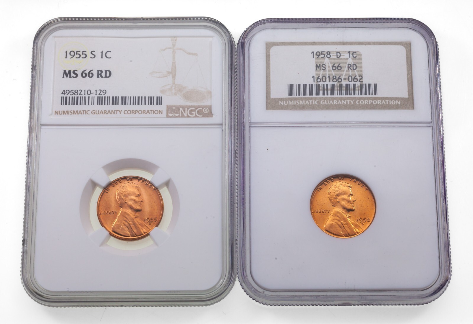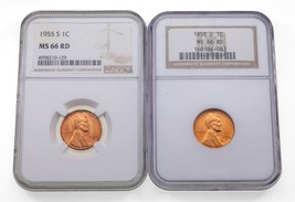 Lot de 2 cents MS-66 Red Lincoln (1955-S et 1958-D) Magnifique ensemble!
