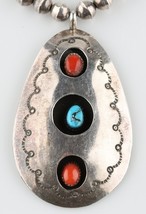 Silver Navajo Shadow Box Pendant avec Turquoise et Coral Cabochons Silver Perles