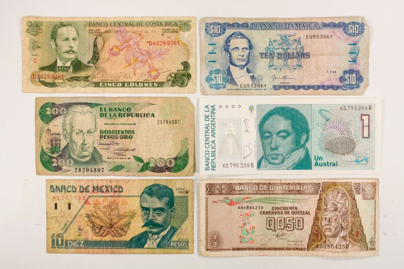 Billets mondiaux. Europe diverses, Asie, Amerique centrale et sud. 50 note Europe diverses, Asie, Amerique centrale et du Sud. Visitez notre magasin: Coin Continental et bijoux (Contactez-nous pour les methodes de paiement a payer sur le ramassage.) * Les exigences douanieres pour chaque pays, y compris tous les droits d'importation, les taxes et les frais, sont la responsabilite de l'acheteur. Tous les packages internationaux auront la declaration et la valeur de commande requises. Acheteurs de Californie: 9,5% de taxe de vente sera ajoutee. Politique de retour: Votre satisfaction continue est tres importante pour nous. Nous offrons une politique de retour en argent de 30 jours. Si vous n'etes pas satisfait de votre achat pour une raison quelconque, veuillez nous informer afin qu