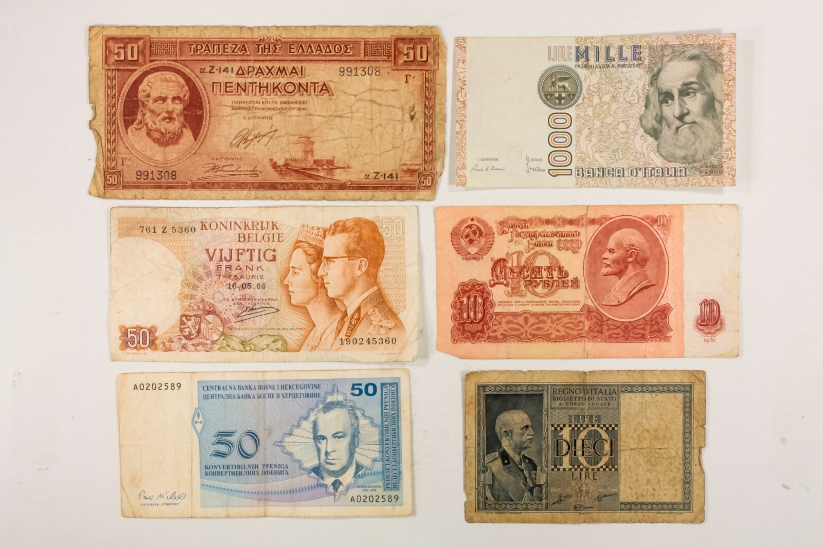 Billets mondiaux. Europe diverses, Asie, Amerique centrale et sud. 50 note