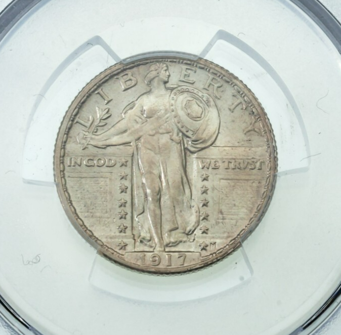 1917 25C Type 2 Debout Liberty Quarts Classé Par PCGS Comme MS65FH Complet Tête