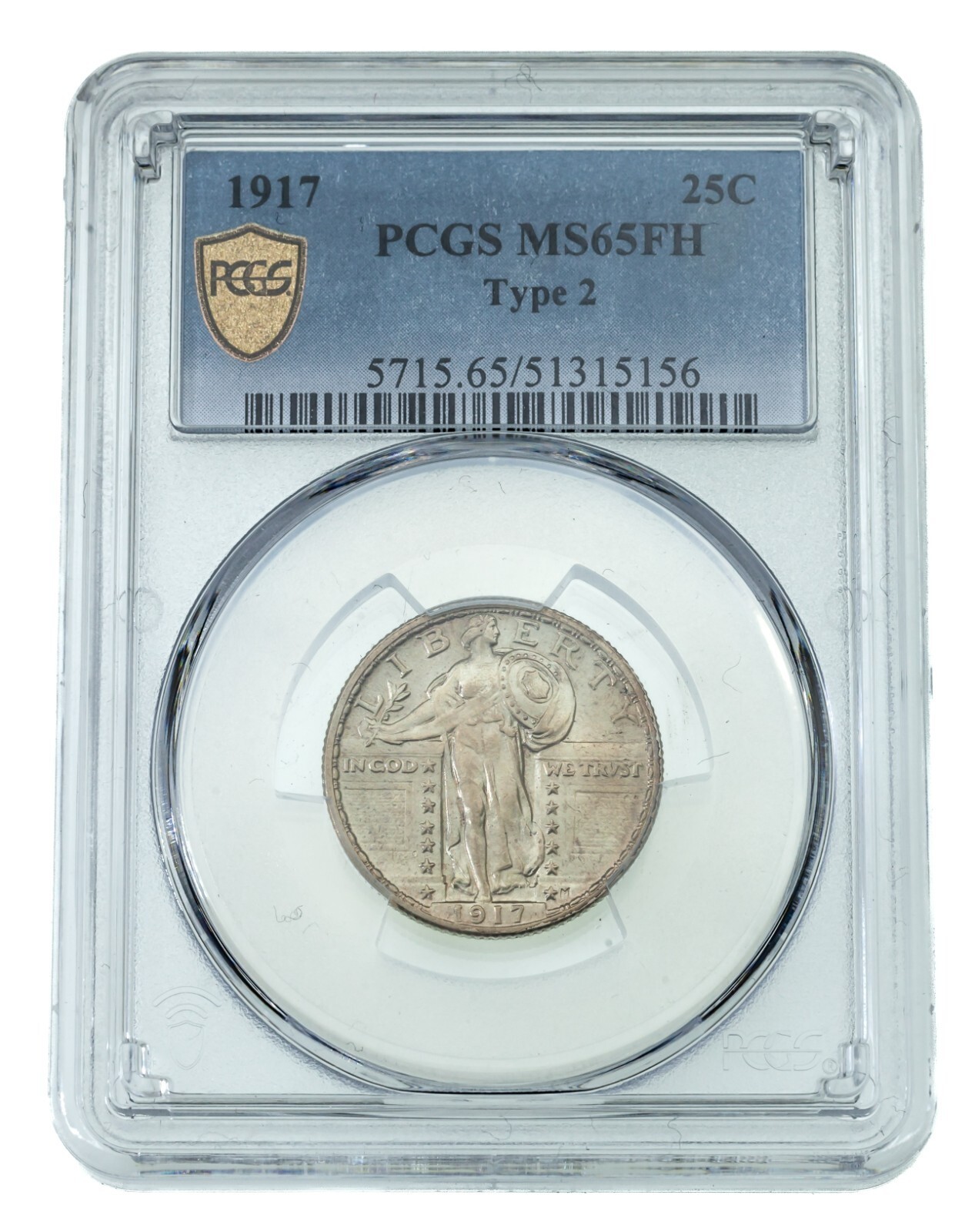 1917 25c Type 2 Quartier Liberty debout classe par PCGS sous le nom de MS65FH Full Head