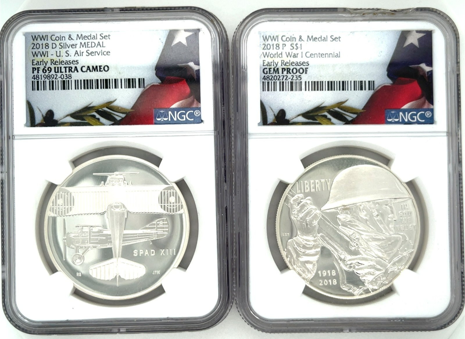 WW1 Centennial and US Air Force Silver Coin and Medal Set Early Restructions