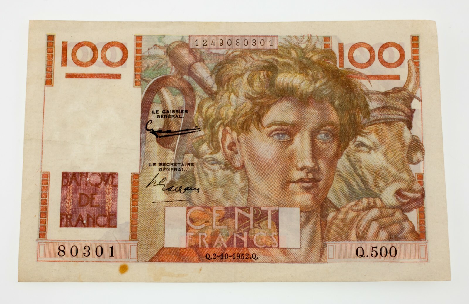1952 France 100 FRANCS TRES FIN CHICH # 128E