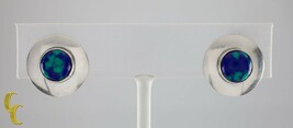 Boucles d'oreilles a clip-on de la malachite Sterling Silver Azurite Cabochon dans les parametres de disque