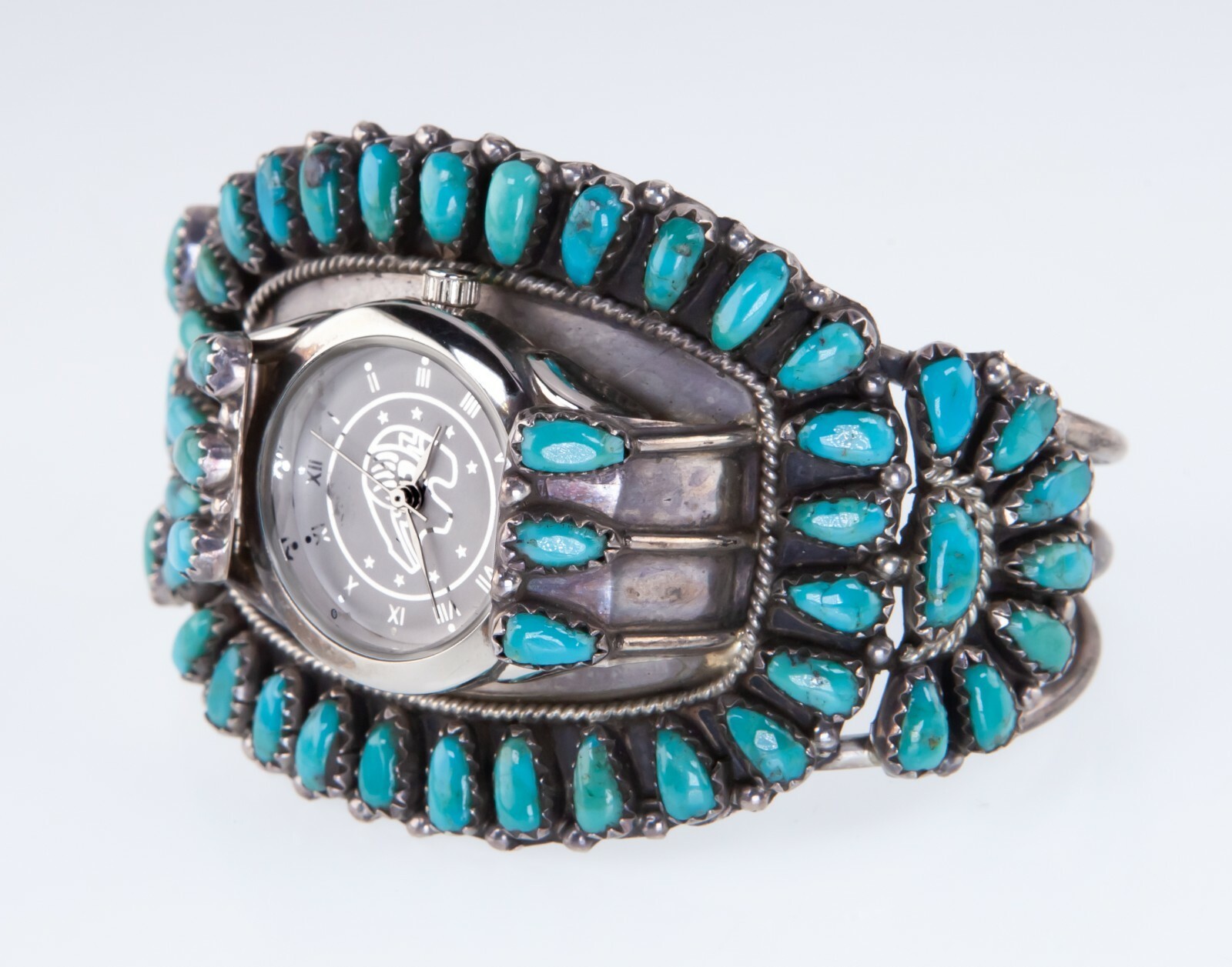Navajo Womens Needlepoint Cuff Watch par Gerald Mitchell