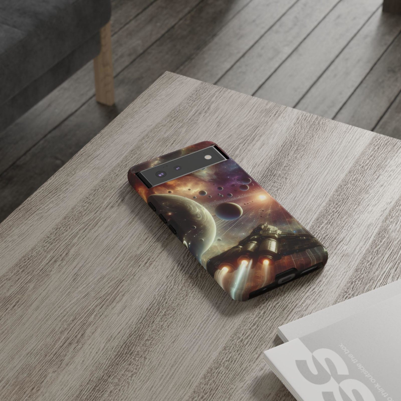 Space Art Tough Cases, Spaceship Traveling Protection for iPhone Galaxy Pixel