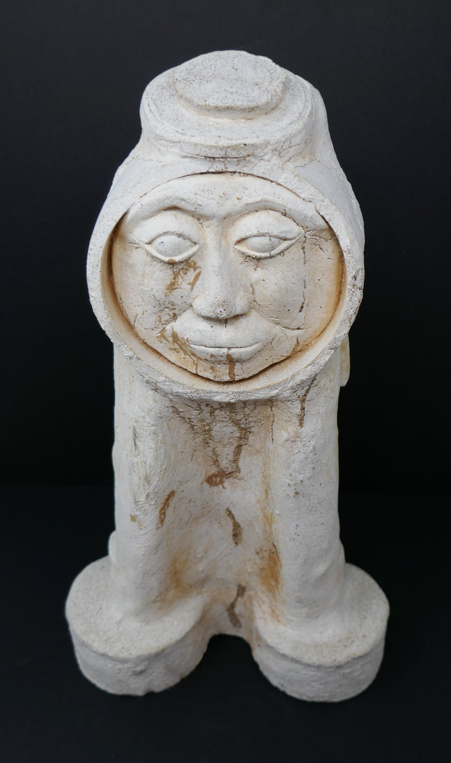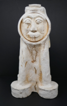 Artist Signed Moon Face Sun Face Abstract Cement Concrete Figure Sculpture