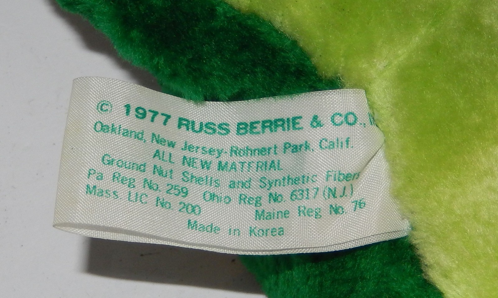 Vintage 1977 Russ Berrie & Co Fleegle The Green Frog 9" Plush stuffed Toy Rare