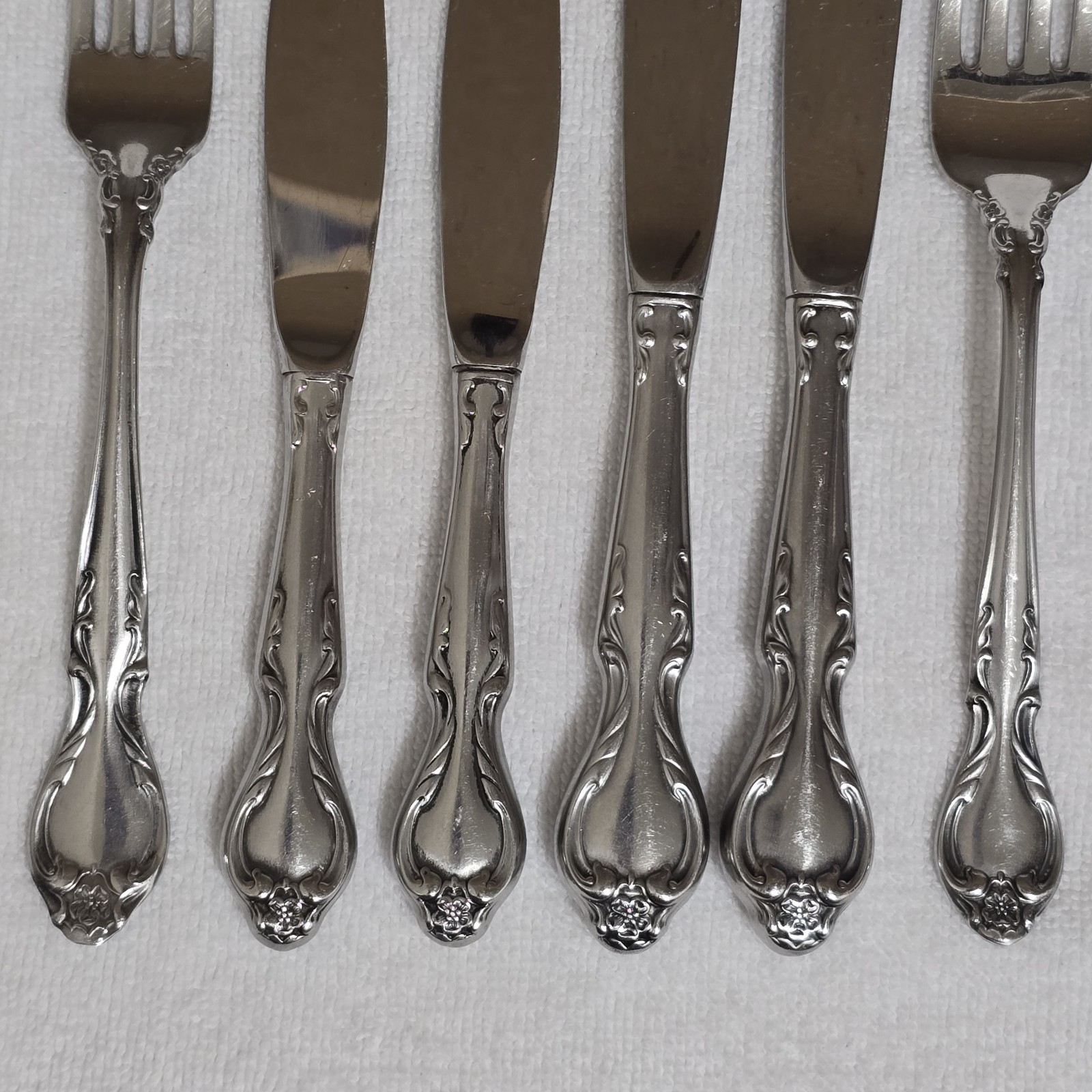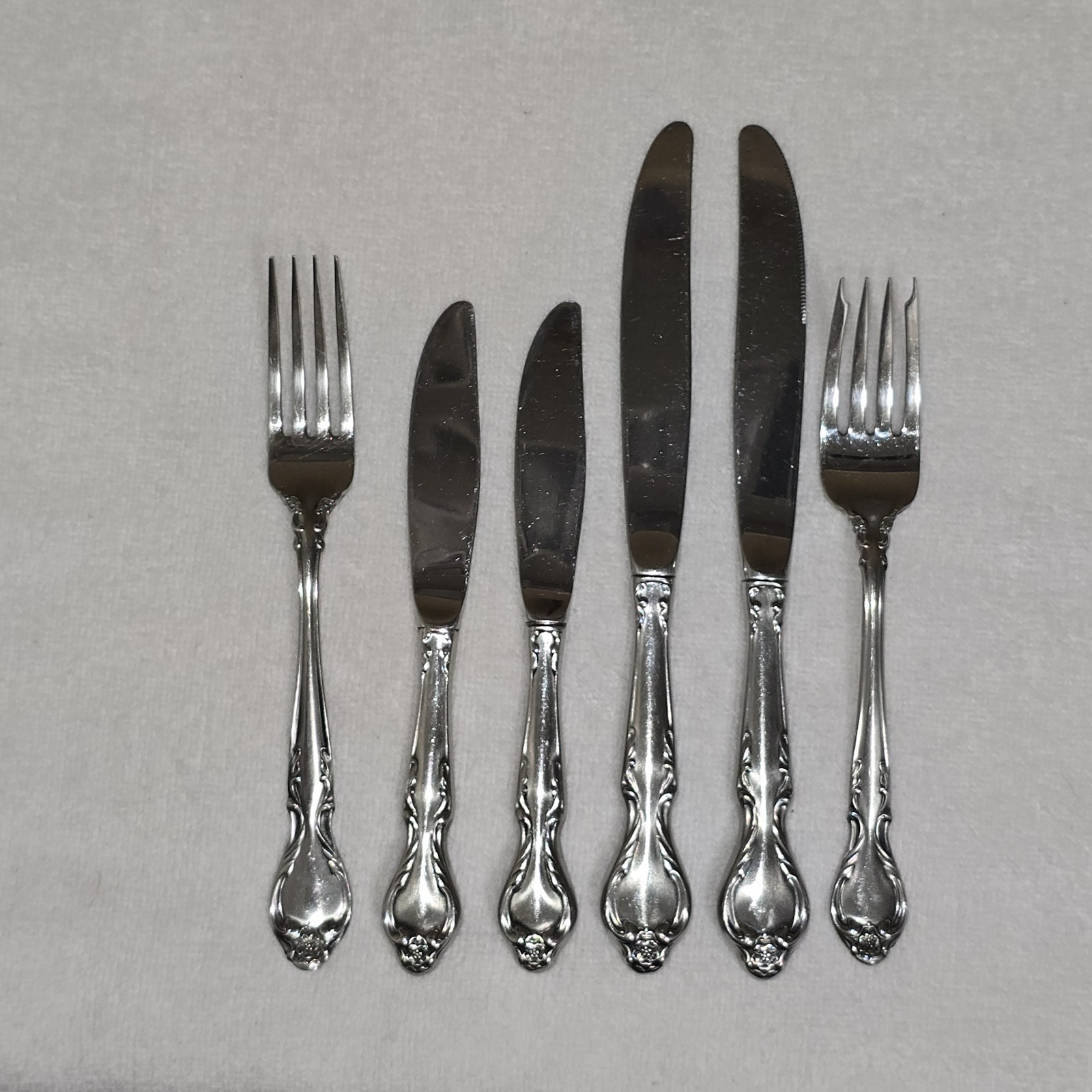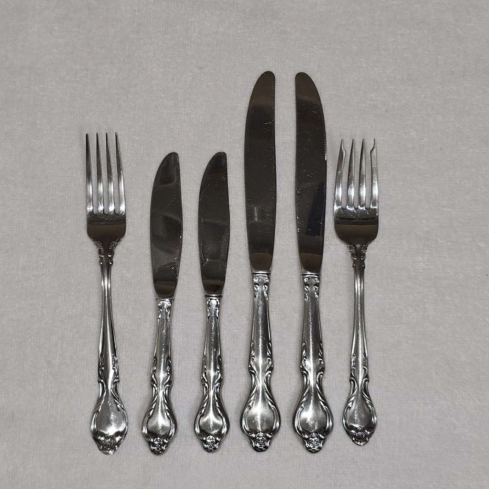 Vintage Lyon Queens Fancy Stainless Flatware 6 pc Set Japan Forks & Knives