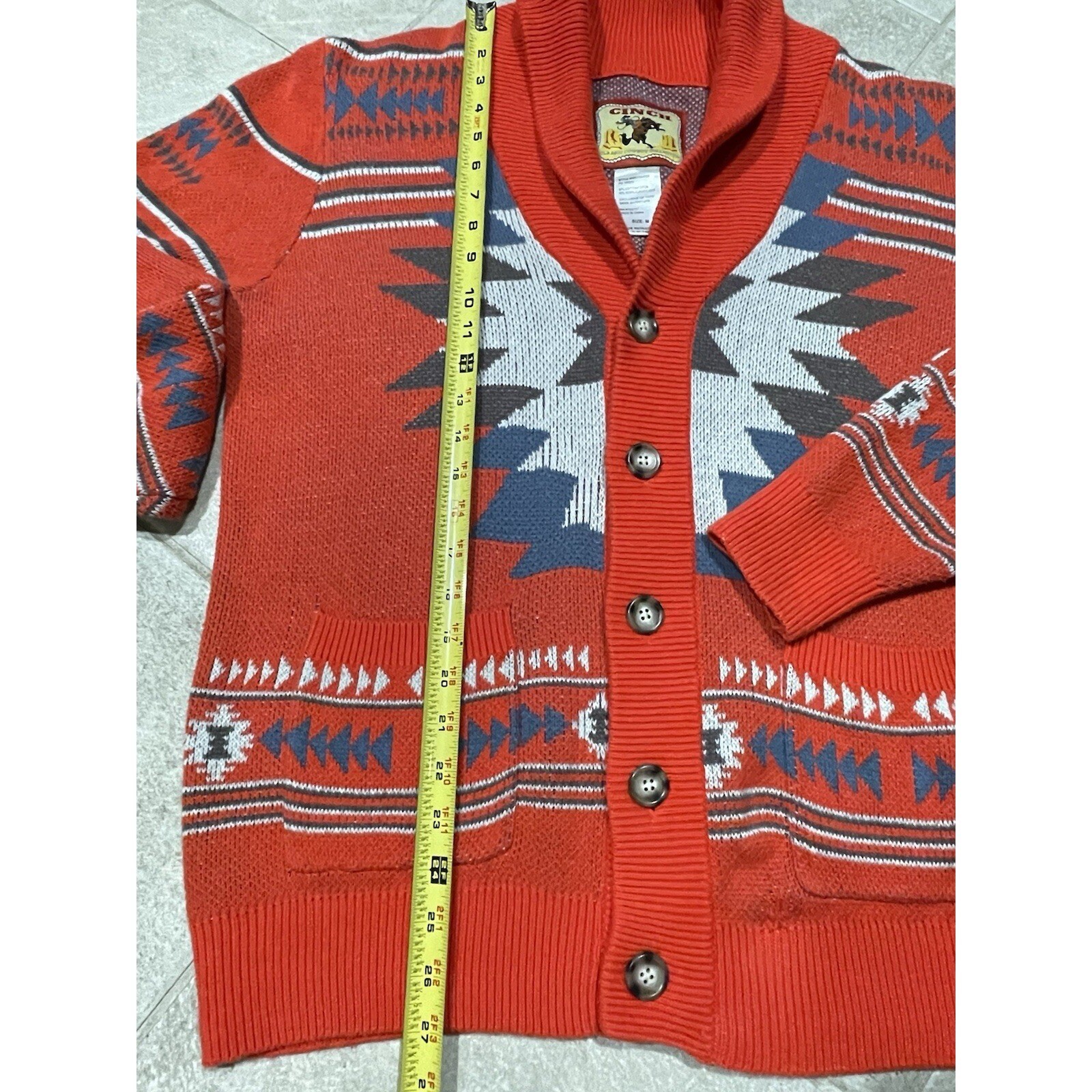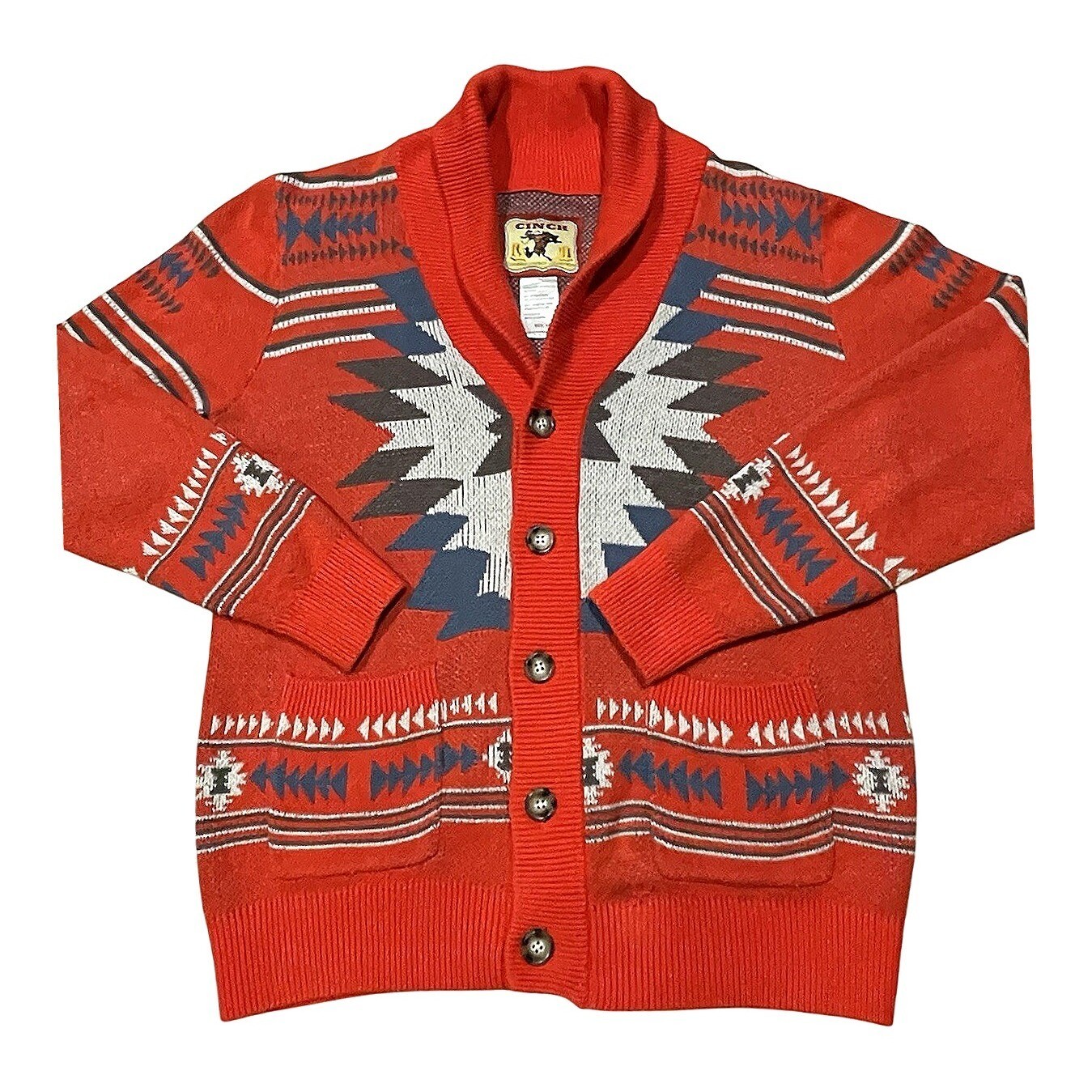 Cinch Medium Aztec Western Cardigan Sweater Red Shawl Collar Cowboy Knit Jacket