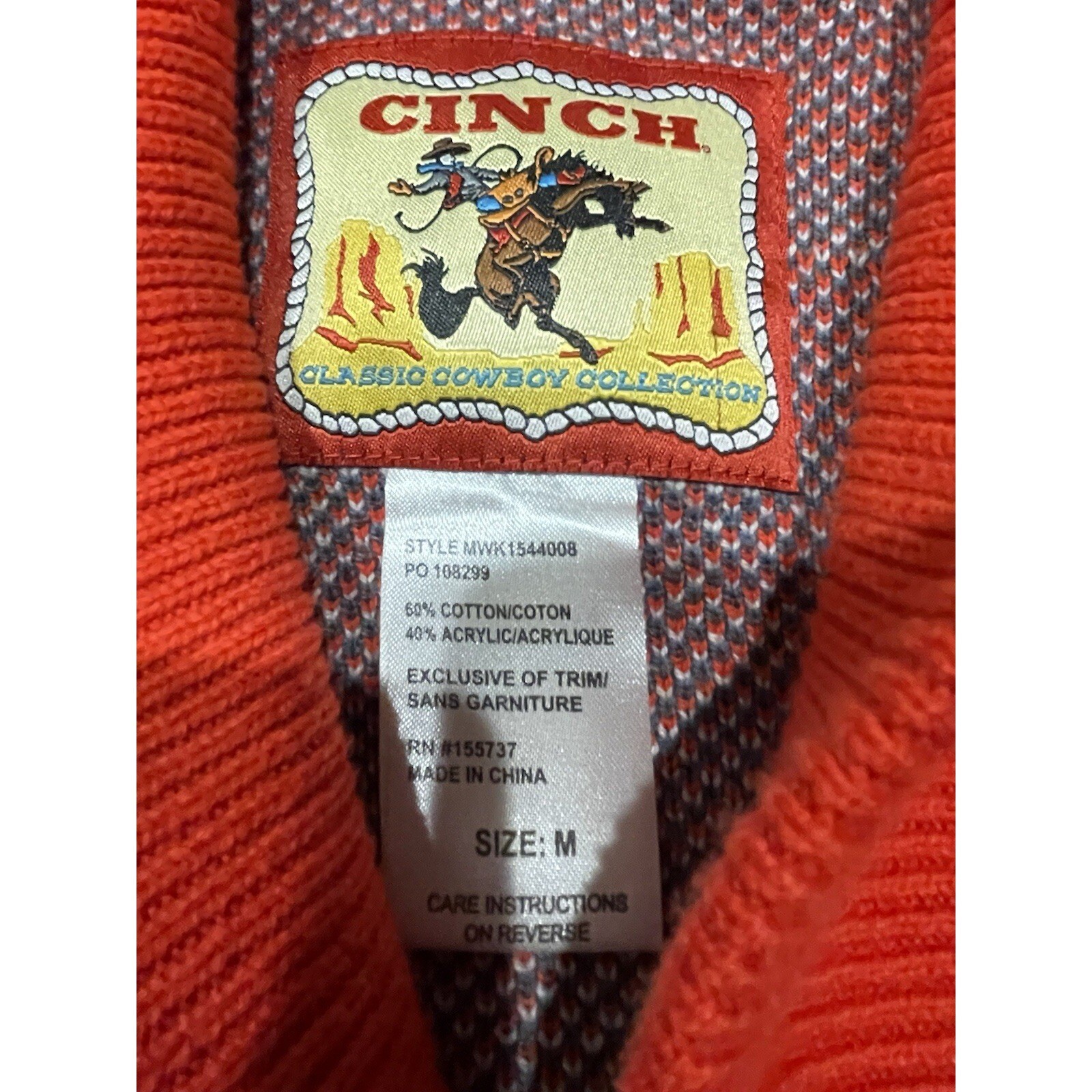 Cinch Medium Aztec Western Cardigan Sweater Red Shawl Collar Cowboy Knit Jacket. Condition is Pre-owned - Good. Shipped with USPS Ground Advantage.