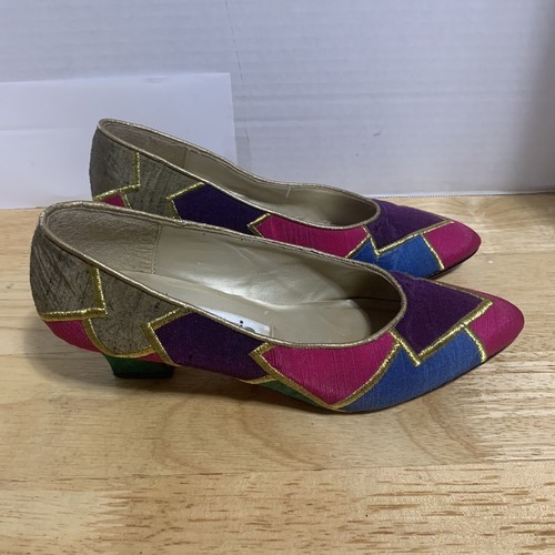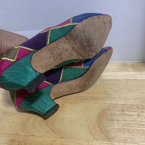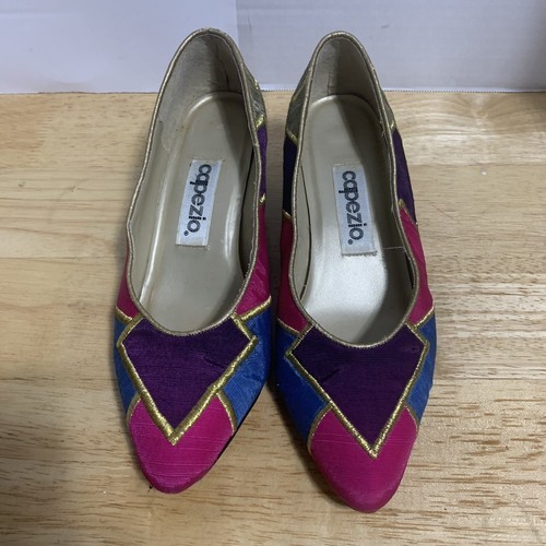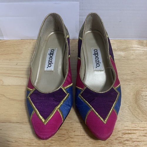 Vintage Women Tahití CAPEZIO 7.5 Multicolored Fabric 2" Kitten Heel Pumps