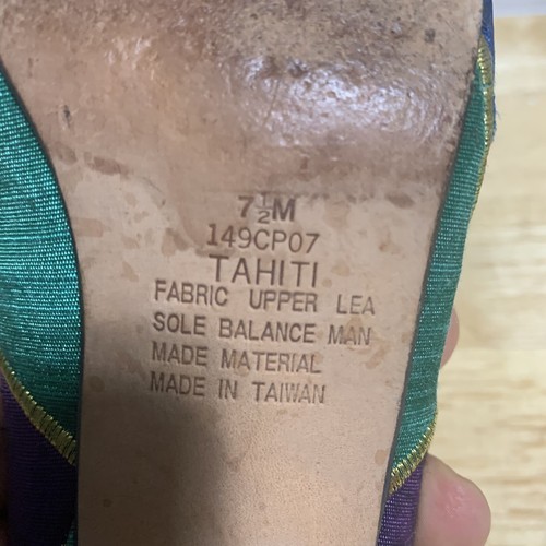 The shoes were made in Taiwan in the 1970s and have not been modified. They come in a US women's shoe size 7.5 and are perfect for those who love unique and stylish vintage shoes. Don't miss out on the opportunity to own these one-of-a-kind pumps.