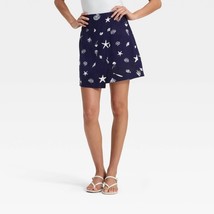 A New Day Women's Linen Blend Skort Size 8 Navy Nautical Seashells Side Zip