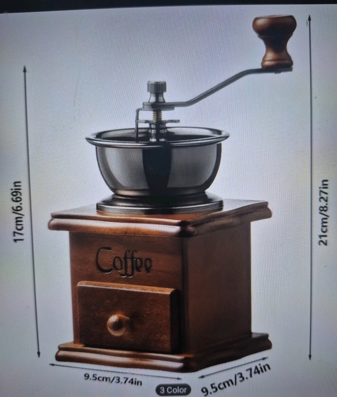This vintage retro manual hand crank coffee bean grinder is a charming addition to any kitchen, crafted from wood and stainless steel with a shiny brown finish. Its compact design, standing at 6.69 inches tall and 3.74 inches wide, makes it portable and lightweight for easy use anywhere. The built-in burr grinder ensures a satisfying grind for your coffee beans or herbs, while the manual operation adds a touch of nostalgia to your coffee brewing experience. Easy to clean and maintain, this coffee grinder is a stylish and practical choice for coffee enthusiasts looking for a retro flair in their kitchen.